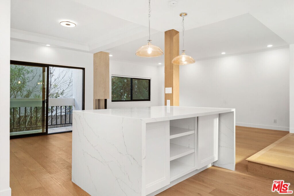 Behind private gates in one of Beverly Hills' most desirable locations, this newly remodeled contemporary townhome offers modern luxury, privacy, and exceptional convenience. Fully updated in 2025, the home features an open-concept living area with wide-plank oak floors, a stone fireplace, and a custom wet bar. The gourmet kitchen showcases a waterfall quartz island, designer cabinetry, and premium appliances.Upstairs, the bright primary suite includes a walk-in closet and a spa-inspired bathroom with Jacuzzi tub, oversized shower, and double vanity. Three additional spacious bedrooms offer flexibility for families, guests, or home offices.Rare amenities include three gated, covered parking spaces with direct unit access and an EV charger, plus access to a resort-style pool and spa. Located within the Beverly Hills Unified School District and moments from dining, shopping, La Cienega Park, and Cedars-Sinai. Turnkey luxury living in a prime Beverly Hills location. MLS# 25618435