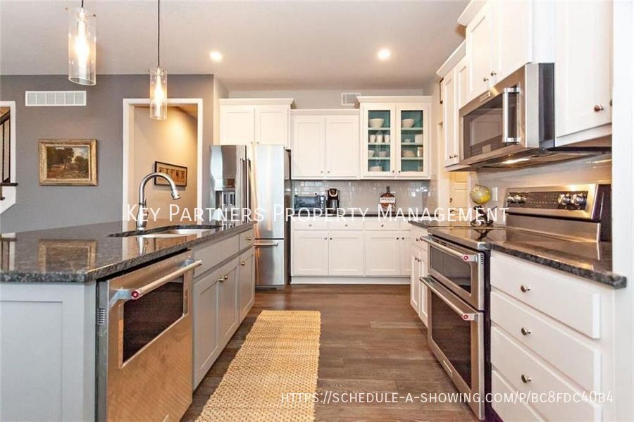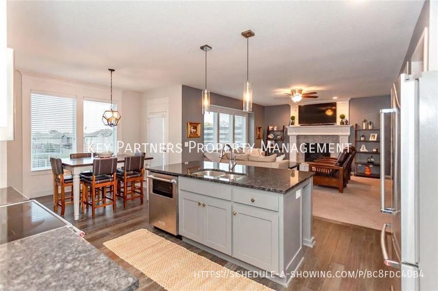 **Available 5/15** This 4 bed 5 bath home features custom upgrades throughout. It is an entertainer's dream - the kitchen has a butler's pantry with a desk, large island with granite, tons of counter and cabinet space, and all SS appliances. The master suite has tray ceilings, vaulted bath with soaking tub, dual shower heads, a custom vanity wall and a 120 SF closet with built-ins & attached laundry! The finished lower level is outfitted with a hidden wine cellar, 5th bath, and has a media viewing/ projection system. The yard is fenced! Fridge, washer, and dryer stay with the home. KPPM cannot be responsible for inaccurate or missing information when listed on a third party website. For the most accurate and updated information, please visit Pets/Service Animals/ESA's (PSAE) must be screened through and monthly PSAE rent will be based on the results of the screening and owner approval. Those fees will range from $20 to $50 per PSAE per month. The refundable deposit will be $350 per pet. The home's features could be slightly different or updated. Fireplace may be decorative use only, Please schedule a showing or check with KPPM () to confirm details.