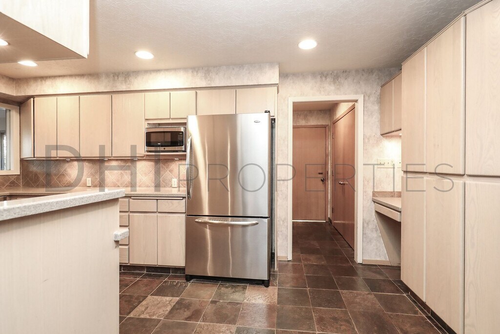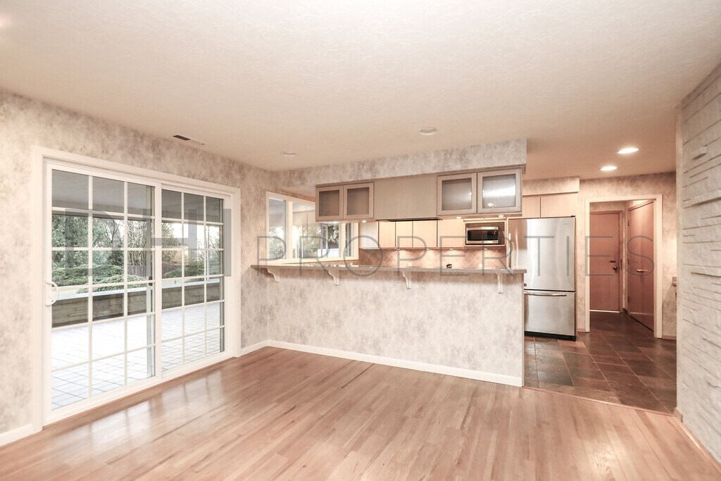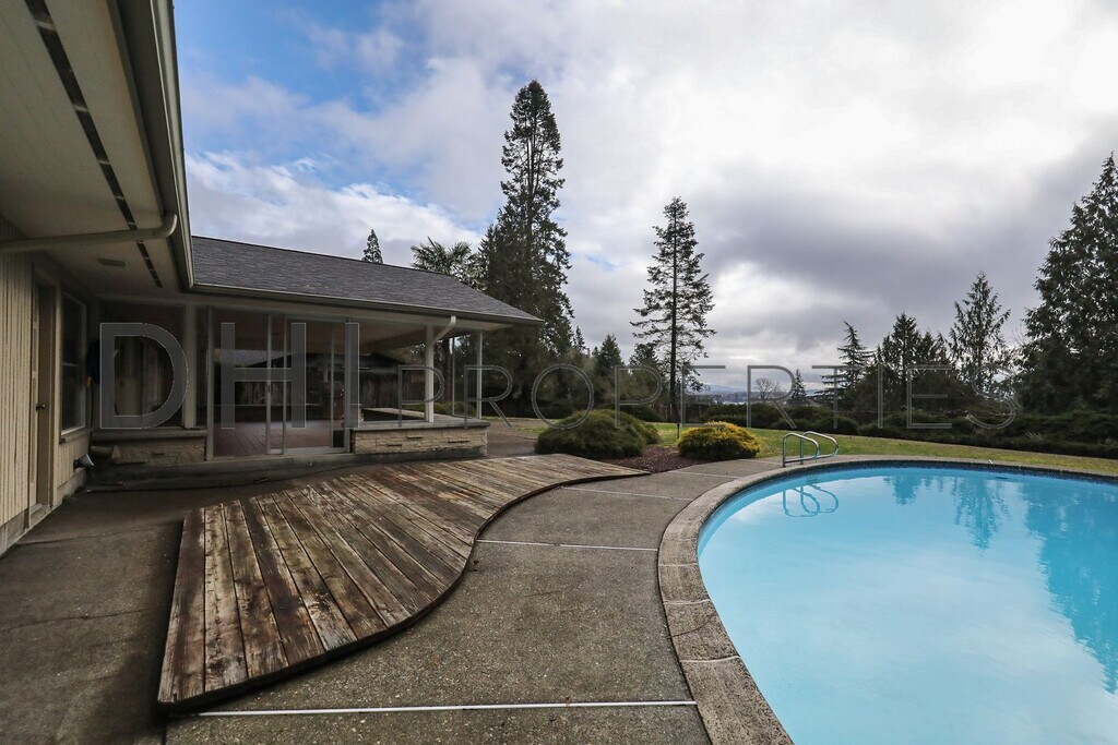 **Move in special 1/2 off first month rent** Spacious Midcentury home for rent in Cascade Way neighborhood. Features three bedrooms, 2.5 bath, and large 1,000 square foot attached garage on almost one acre. Private fenced back yard with heated in-ground swimming pool. Washer dryer hookups in separate laundry room. Separate bath off primary bedroom with skylight and large walk-in shower. Home has two water heaters. 600 square foot covered patio and lots of off-street parking for at least ten vehicles. Garage includes separate office/workshop room.