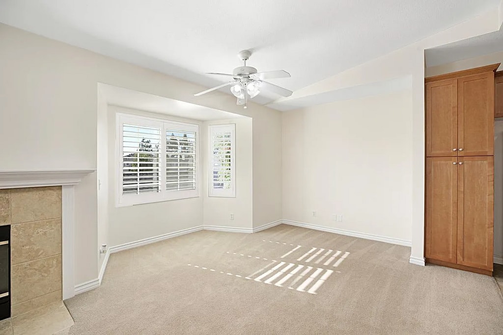 UNIT WITH PRIVACY AND VIEWS AS WELL AS 1 CAR GARAGE As you arrive to this well laid out and oversized 1 Bedroom, 1 Bathroom home you are greeted with a very bright, open floor plan, high vaulted ceilings and fantastic mountain views over the rooftops, ready for you to enjoy. When you enter the home through the large private patio, you immediately feel the spaciousness of the home, the large living room with fireplace, connecting with the dining area and the breakfast bar to the kitchen. The upgraded kitchen boasts granite countertops, appliances and plenty of storage and a pantry. Continuing through the living area you will find the spacious master bedroom with high ceiling, upgraded bathroom, tub/shower as well as a large walk-in closet. This home offers a GREAT space for the most meticulous tenant: Walls and some ceiling areas recently painted, overall, this gives the home a nice, fresh feel and has plantations shutters throughout the home. The home also provides the UNIQUE feature of a large 1 car garage including storage. The highly sought after community of Canyon Villas has pool, gym and clubhouse and the area offers walking paths, variety of parks as well as convenient proximity to award winning schools and shopping and only 10 minutes from the beach.