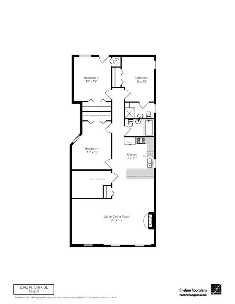 There is currently a 3 Bed 2 Bath Apartment for rent with 1,200 listed at 2342 N Clark St. It is Available April 1, 2026.