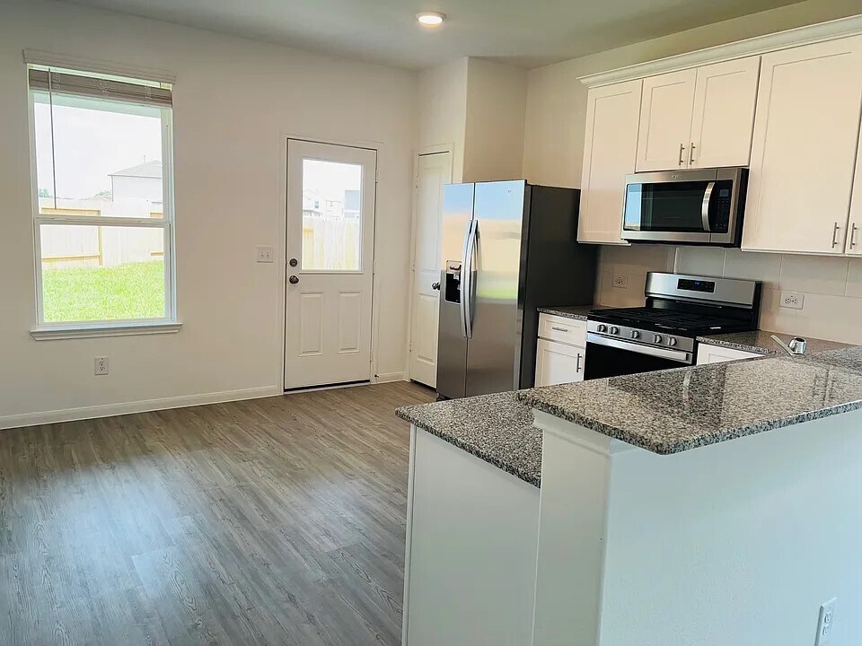 Quiet and new neighborhood. closet to 290,I 99 and shopping mall. The interior has luxury vinyl flooring throughout with carpet in the bedrooms only. The spacious eat-in kitchen features 42" cabinets with Satin Nickel hardware,granite countertops,and a deep under-mount stainless steel sink. Plus,upgraded Whirlpool Stainless Steel appliances w/ 5-burner gas range,convection oven with air fryer mode,Washer/Dryer,and refrigerator. The split floor plan has a secluded Owner's suite tucked away in the back & features a large walk-in shower with ceramic tile surrounds and a roomy walk-in closet. The home also has blinds,rear sod,four sides gutters & an irrigation system,and a covered patio on an oversized lot. MLS# 45955460