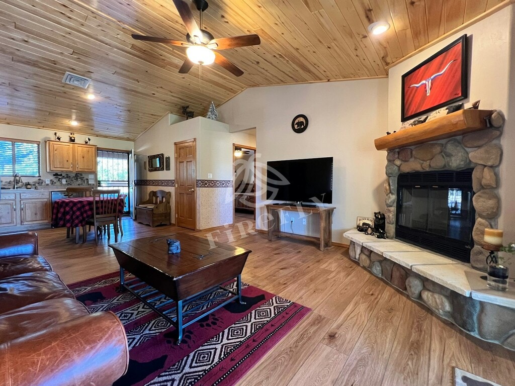 Available for a month-to-month lease. Two bedroom, one full bathroom cabin home in Overgaard ready for immediate move in! The house is fully furnished, tastefully decorated and ready for you to call home. A beautiful stone fireplace serves as the centerpiece of a large living room that opens to a spacious fully fenced backyard. The kitchen features matching slate appliances, custom tile backsplash, and ample cabinet and counter space. Located in the sought-after community of Bison Ranch, the neighborhood offers a large park, catch-and-release fishing pond and playground, as well as dining and shopping just steps away in Bison Town. Bring your fishing poles, kayaks, paddle boards, and enjoy all that the the rim country has to offer with nearby lakes, hiking and off-roading trails. Listed by Firefly Property Management, LLC. To view a brief video tour of this home, copy and paste the following link into a new browser window/tab: