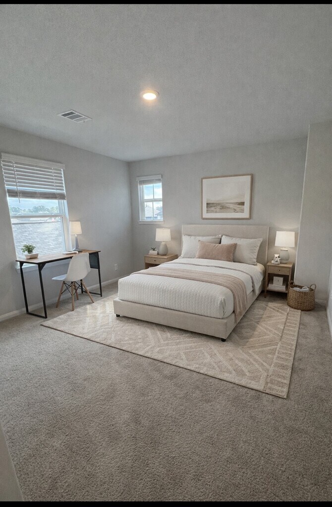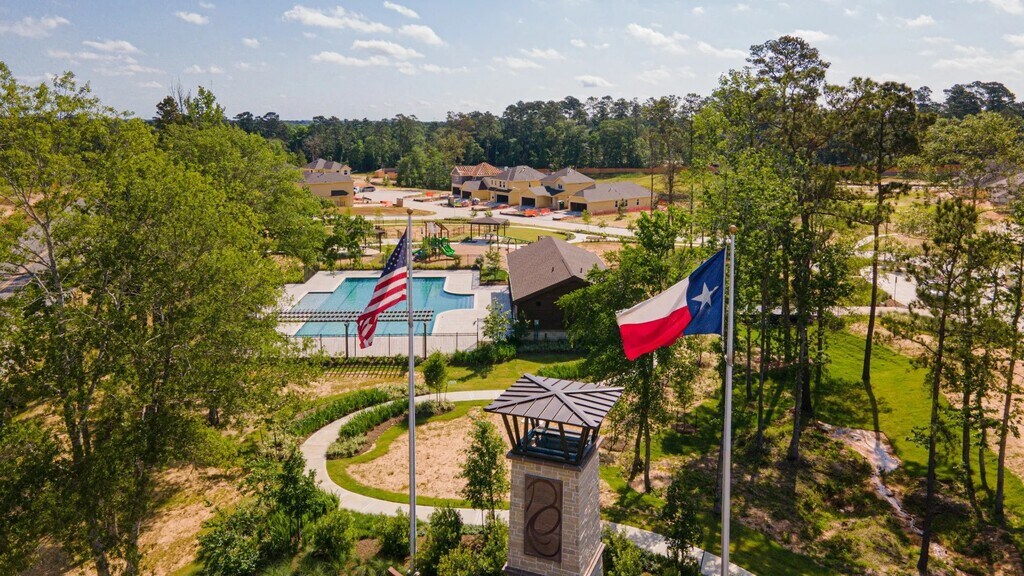 Nestled in the prestigious River’s Edge community of Conroe,this residence is zoned to the highly sought after The Woodlands school district,including Buckalew Elementary,Mitchell Intermediate,McCullough Junior High & The Woodlands High School. The elegant Woodland floor plan showcases a thoughtfully designed two-story layout offering five bedrooms,2.5 half bathrooms,and 2 car garage. The interior is enhanced by carpeting in the bedrooms and luxury vinyl plank flooring throughout the main living areas. The kitchen is appointed with 42-inch custom cabinetry and granite countertops. The first-floor & a spacious walk-in closet. Secondary bedrooms are generously sized and include walk-in closets,offering storage and comfort. Outdoor living is equally impressive,with full sod,an automatic sprinkler system,and a covered patio. This home presents luxury living,superior schools,and location. MLS# 48311858