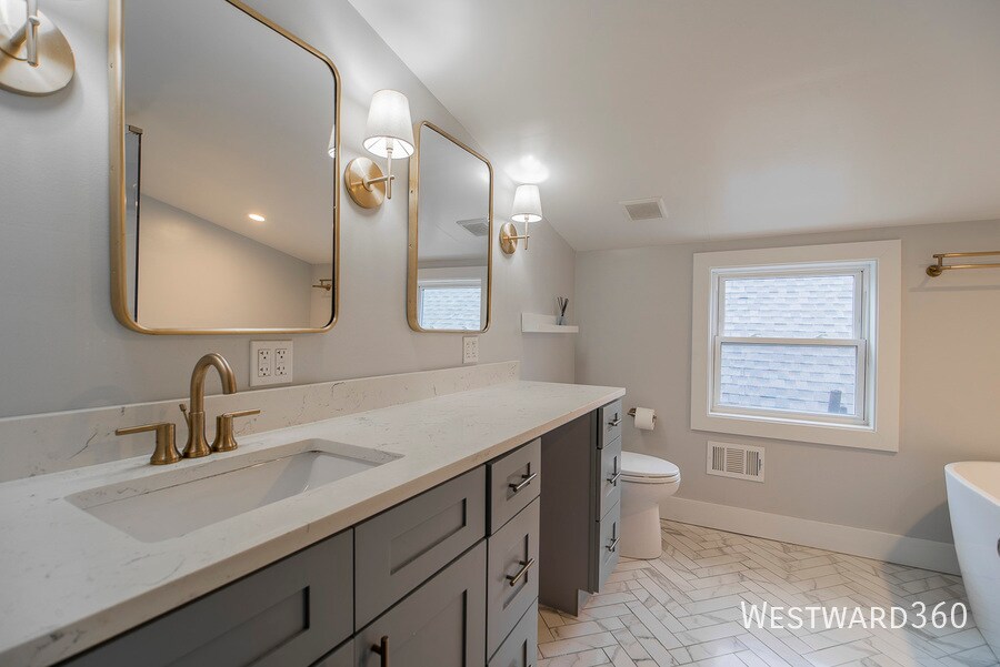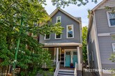 Rarely available - Gorgeous and sunny Bucktown Duplex-Up! Enjoy open concept floorplan, hardwood flooring, modern upgraded kitchen and two full baths, including large primary en suite with separate soaking tub and shower. The kitchen also includes a bar area with wine/beverage fridge. First floor has 2 bedrooms (second bedroom on first floor best suited for office or guest room). Top floor has large primary suite with massive walk-in closet. Included In-unit washer/dryer. Private, separate entrance. Included garage parking for 1 car. Lovely common outdoor patio perfect for grilling. Heart of Bucktown that is walking distance to the famous Leavitt Street Inn, Margie's Candies, Holstein Park, and the 606. 15 min walk to Western CTA station (blue line). Easy access to 90/94. Small/Med dogs OK. Sorry, no cats.