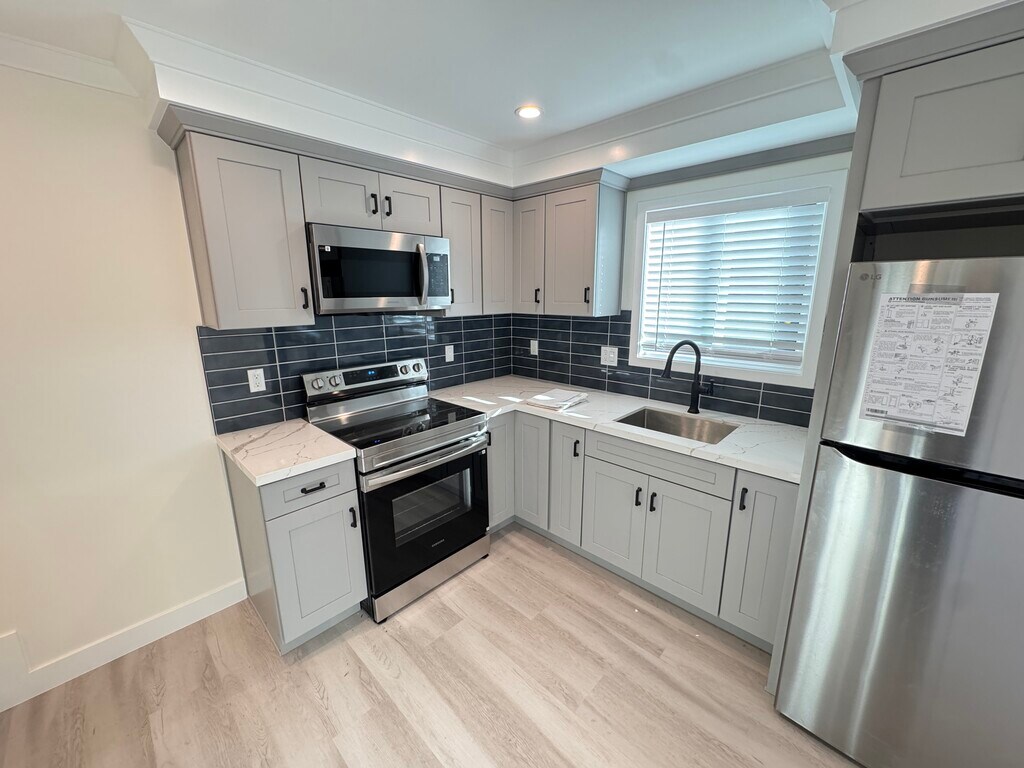 Be the first to live in this newly constructed 1,000 sq ft accessory dwelling unit located in the highly desirable Southwood Riviera neighborhood. This brand-new two-story home offers a modern layout with an open living area, recessed lighting, and abundant natural light throughout. The contemporary kitchen features new stainless steel appliances, including an over-the-range microwave, electric stove, and refrigerator, along with quartz countertops, ample cabinetry, and a stylish tile backsplash. A convenient half bathroom is located on the main level, as well as an in-unit brand new washer and dryer for added ease and functionality. Upstairs, the home includes three bedrooms and two full bathrooms, providing flexibility for sleeping arrangements, a home office, or guest space. The primary bedroom features a walk-in closet and an en-suite bathroom with modern finishes, matte black fixtures, and a glass-enclosed shower. The additional bedrooms share a second full bathroom designed with the same clean and contemporary aesthetic. The ADU has its own private gated entrance and a fenced yard area exclusively for the occupant’s use, offering both privacy and outdoor enjoyment. Located within walking distance to HMart, CVS, Ross, local banks, and South High, the home provides convenient access to everyday essentials, dining, and schools in one of the most sought-after areas of Torrance. The unit is offered at $4,000 per month with a one-year lease term. On-street parking is available. No pets and no smoking. Move-in will be ready in Jan. 2026, making this an ideal opportunity for anyone seeking a modern, private, turnkey living space in a prime neighborhood.