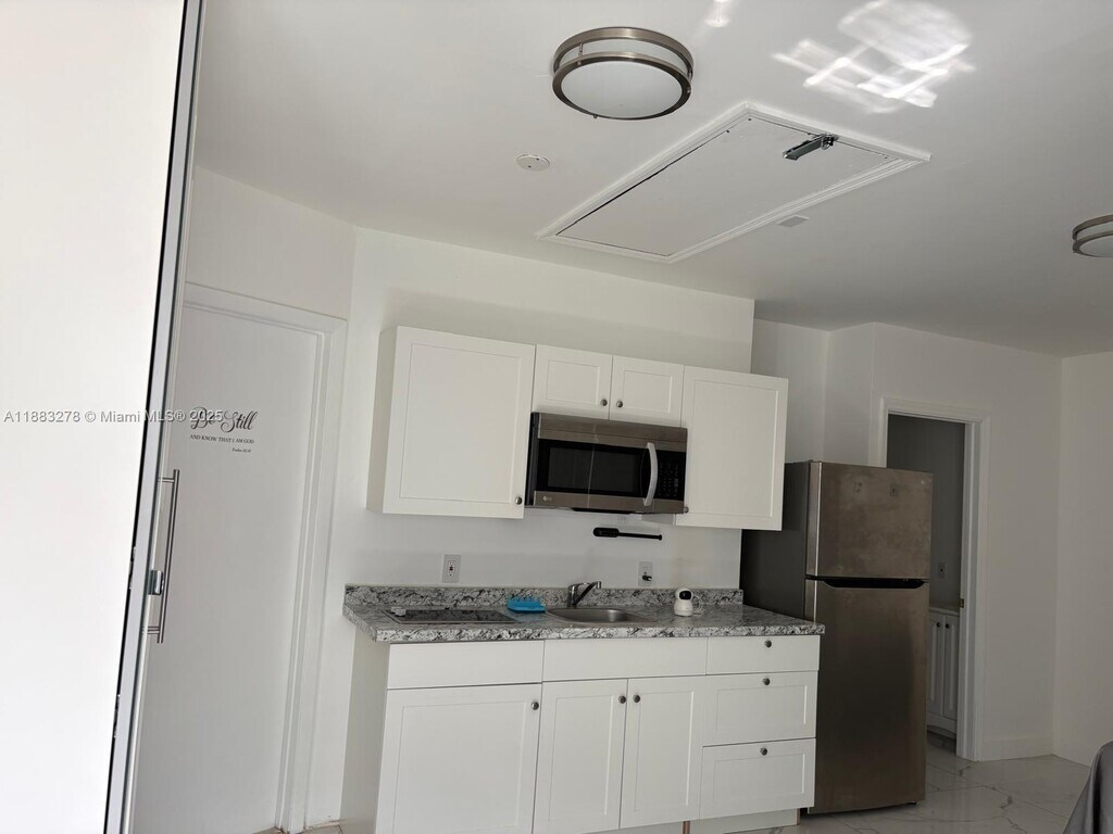 Stylish and efficient studio, fully updated for modern living! Enjoy a spacious king-size bed, generous closet, and a sleek bathroom. The kitchenette comes with a stainless steel fridge, electric stove, and microwave for easy meal prep. One reserved parking spot is included. A cozy, move-in ready space designed for comfort and convenience.
