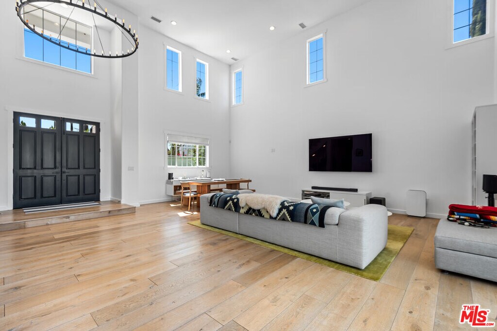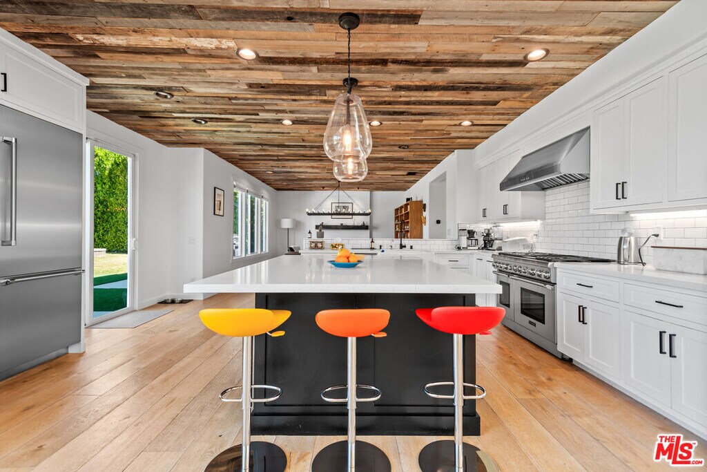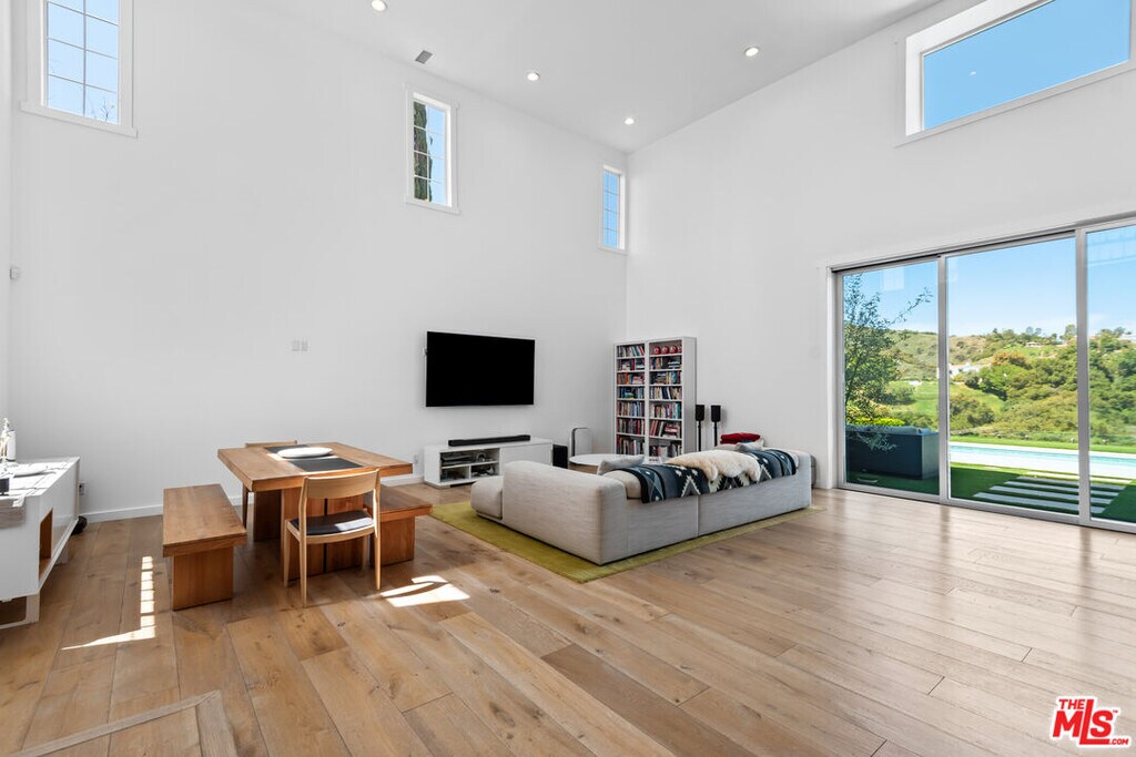 Absolutely stunning, fully remodeled contemporary-modern farmhouse situated at the end of a private cul-de-sac in the exclusive gated community of The Claridge Estates. This beautifully re-imagined 5-bedroom, 4.5-bath home features soaring ceilings, wide-plank European wood floors, and an elegant chef's kitchen with a large center island, custom cabinetry, and top-of-the-line Thermador appliances. The kitchen opens seamlessly to a dramatic great room with 20-foot ceilings and oversized La Cantina pocket doors that create true indoor-outdoor living. Enjoy breathtaking unobstructed panoramic views from the private backyard, complete with a pool, barbecue center, gazebo, gas fire pit, manicured lawns, and a putting green. Additional highlights include a formal dining room with fireplace and a downstairs en-suite bedroom. Community amenities include a full-sized tennis and pickleball court and a half basketball court. A rare offering in one of Calabasas' most desirable gated enclaves. Submit on pets. MLS# 25628113