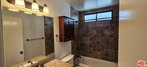 TOP FLOOR 2 BEDROOM / 2 BATH WITH IN-UNIT LAUNDRY. Controlled access, gated building. Top floor, facing the front. Updated unit with 2 private patios, fully-appointed kitchen with quartz counters and tile backsplash (refrigerator, gas range, dishwasher, microwave). Freshly painted throughout. Laminate and tile flooring, dual pane glass, lots of closet and cabinet storage space. Updated baths with quartz counters and custom tiles. Quiet location. 2 reserved parking spaces in the gated garage. Walk to the Metro Expo Line station. Close to Century City, Beverly Hills, U.C.L.A. Pets OK - one (1) small dog (up to 40 lbs.) or up to 2 cats. Pet deposit: $500 (covers all pets). Pet amenity fee: $50/month for dog; $25/month for cat(s). WE ARE HAPPY TO MAKE REASONABLE ACCOMMODATIONS FOR ALL APPLICANTS WITH DISABILITY UPON REQUEST. YOU CAN MAKE YOUR UNIT DISABILITY ACCESSIBLE UPON REQUEST. PLEASE DO NOT DISTURB THE RESIDENTS OF THE BUILDING. MLS# 25615055