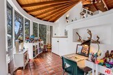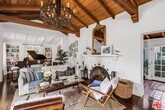 Partially Furnished. This vintage 1930s Spanish, sited on one of Westwood Hills' prettiest avenues, emanates warmth and meaningful character at every turn. Highly functional with its three bedrooms and three bathrooms, this soulful home will also surely enchant and retains its beautiful, original architectural details such as carved wood beams, colorful tile and wide-planked wood floors.A formal entry opens to a rich, vibrant living room graced by a vaulted, rustic, wood-beamed ceiling and a romantic fireplace. The library alcove has the original, inset bookcases. Also off the entry is a lovely formal dining room.The open, recently updated cook's kitchen has a vaulted, wood-beamed ceiling and all the upgrades---custom cabinetry with many built-ins, Carrara marble countertops, a work-station island, a farmhouse sink and the pice de rsistance, a La Cornue cooking range. There's a bar for casual dining overlooking a sun-soaked loggia which gracefully opens to the family room and to the backyard.On the main level find two bedrooms each with dedicated baths. Upstairs, there's a sunny primary suite with large closet space, a full bathroom and sweeping views across the wooded neighborhood. Outdoors, there is a large stone and brick patio, perfect for al fresco entertaining under the sun and stars. Beyond is an expansive grassy area with a vast kids play area and a lounging deck. The landscape is mature and lush. Currently, the two-car garage has been converted to a music studio. This special home is located in the coveted Warner Avenue School District and in close proximity to UCLA and to the fine shopping and dining in nearby Westwood and Brentwood Villages. MLS# 25602427