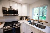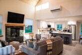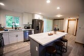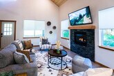 Welcome to this cozy 3-bedroom home near Mt. Rainier, featuring a king bed for your comfort. Experience tranquility combined with modern amenities in this two-story home, which includes 3 bedrooms, 2 bathrooms, and spans approximately 1500 sq ft. A few steps lead you to the entrance, where you will find a welcoming space perfect for your family retreat. This home offers a relaxing and private backyard that opens to a pond, perfect for fishing. The first floor includes a living room with a queen sleeper sofa, a fully stocked kitchen, dining area, and access to a patio and backyard. The main floor is air-conditioned for your comfort. Upstairs, you'll find two additional bedrooms with queen beds, a bathroom with a shower and tub combo, and a loft area with lounge chairs for additional relaxation. Enjoy the convenience of an on-site washer and dryer, and stay entertained with a smart TV and internet access, with Netflix ready for your use. The regular nightly rate covers 6 guests, with additional guest fees of $25 per person per night, up to a maximum of 8 guests. Located in the private community of Paradise Estates, this home is a mix of full-time residents, vacation homes, and other rental properties. It is approximately 5 miles from the Nisqually entrance of Mt. Rainier National Park. The home is accessible by fully maintained roads year-round, though a four-wheel drive is recommended in the winter. Tire chains are available for rent at local stores during the winter months. This home is not pet-friendly, with a $500 fine for unauthorized pets. Strictly no parties or events are allowed, and quiet hours are enforced between 10 pm and 8 am. Smoking or vaping of any kind is prohibited on the property, including outdoor areas, with a $500 fine per violation. Use of the fire pit and charcoal grill is prohibited during the burn ban.