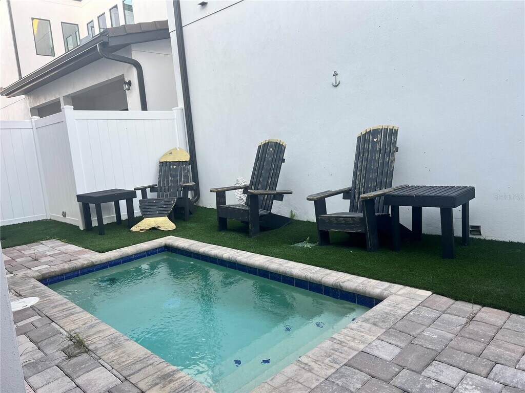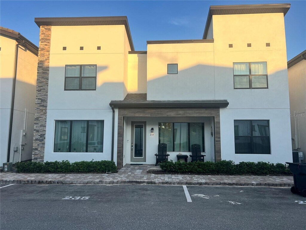 Modern luxury meets vacation living: just minutes from Disney! Welcome to 235 Villa Domani Cir, a stunning 4-bedroom, 3.5-bathroom courtyard-style villa located in the exclusive private residential community of Villa Domani Resort in Davenport. This exceptional property offers over 2,200 square feet of bright, contemporary living space, thoughtfully designed for comfort, style, and top-tier vacation appeal. Step inside and discover two spacious master suites: one conveniently located on the first floor and the main suite on the second, perfect for multigenerational stays or maximizing rental income. The open layout features a sleek modern kitchen, a large island, and a seamless indoor-outdoor flow through wide sliding doors that lead to your private patio. This villa is move-in ready and fully furnished, ready to welcome your next guests or to call it home.
