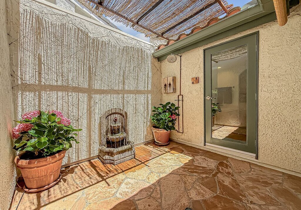 This beautiful 1 story fully furnished Spanish style hacienda in Westlake Village is move-in ready. It has direct access to a private, gated greenbelt which opens to the lake. This home is filled with natural woods and stone throughout. Three peaceful fountains provide a sense of serenity and tranquility. Enjoy a backyard with a covered Bamboo lounge area with edible grapes growing overhead, a sun patio with lake views and a built in BBQ and fire pit. Hiking and biking trails and great shopping and dining are all within walking distance. There are three very nice bedrooms with comfy beds and soft linens. One of the bedrooms is set up as an office with a loft that sleeps three. The primary bedroom has a bathroom with a jacuzzi tub and separate rain shower. This bath also leads to a private enclosed outdoor atrium with a hot/cold rain shower. This home is light and bright, newly painted and has cozy furnishings and decor. Dogs are welcome and can enjoy a run in the large and private gated greenbelt. Prime location with excellent schools. Come take a tour of your new home! While the rent does not include utilities such as gas, electricity, trash collection or water, this home provides the canvas for personalized living. Don't miss out on this fantastic opportunity! Schedule a viewing today and make this charming property your own.