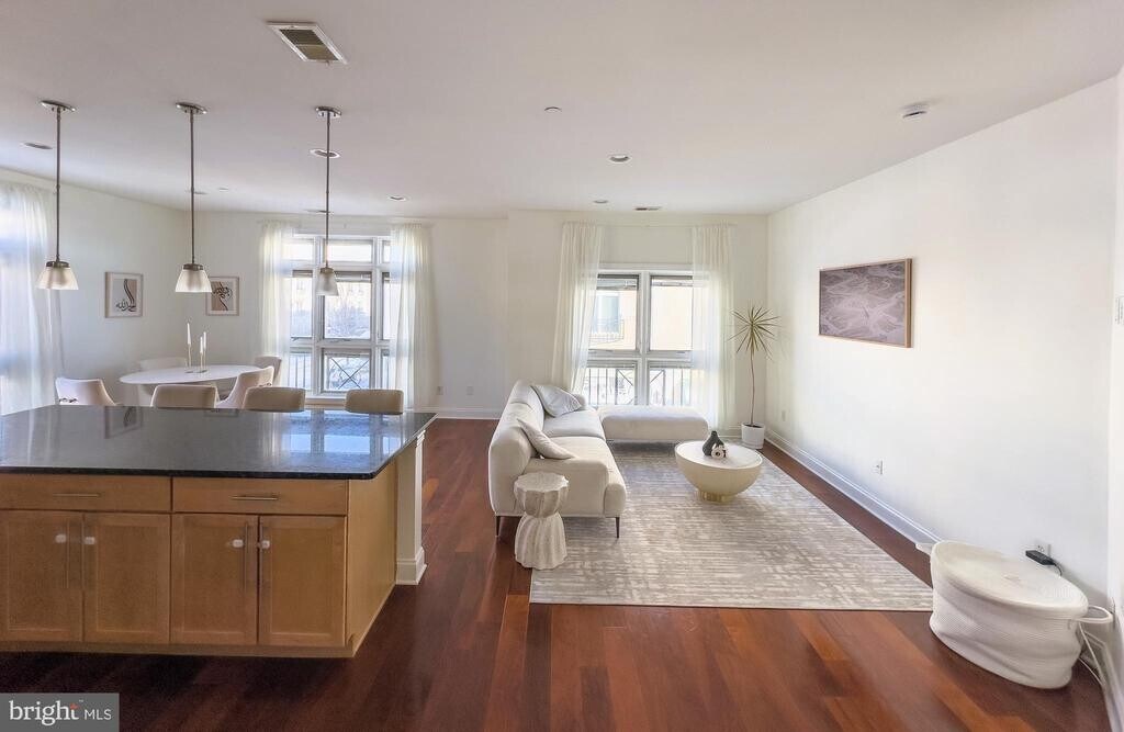 Modern corner condo available for lease at The Lofts at Town Center in Robbinsville. This bright unit features hardwood floors throughout, high ceilings, large windows, and an open kitchen with granite countertops, birch cabinetry, and stainless steel appliances. The home also includes a washer and dryer, spacious bedrooms, and ample natural light.