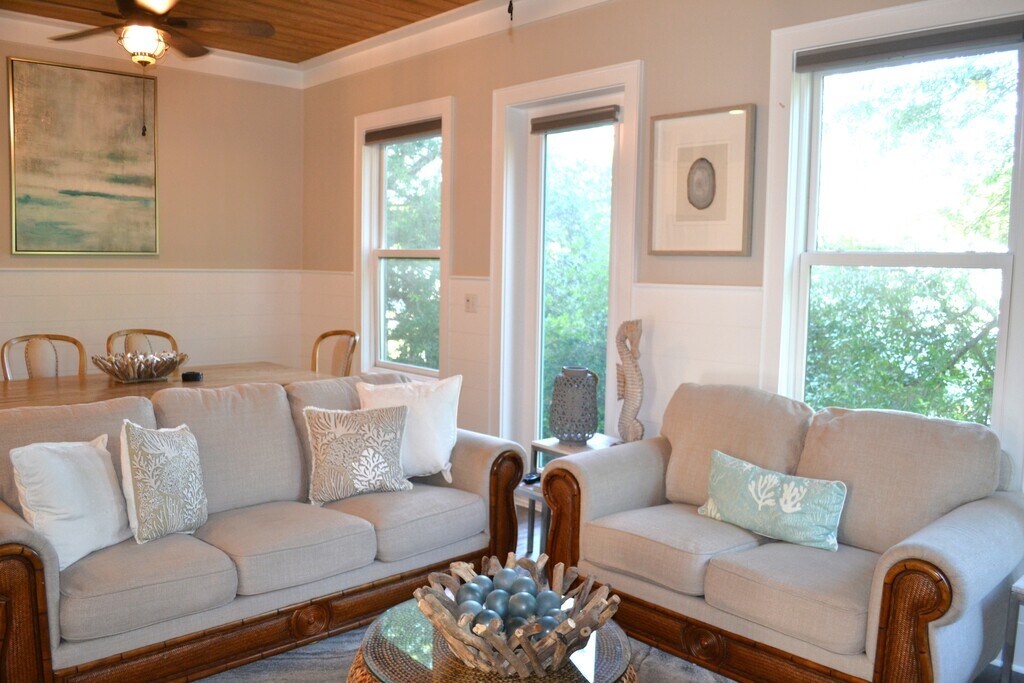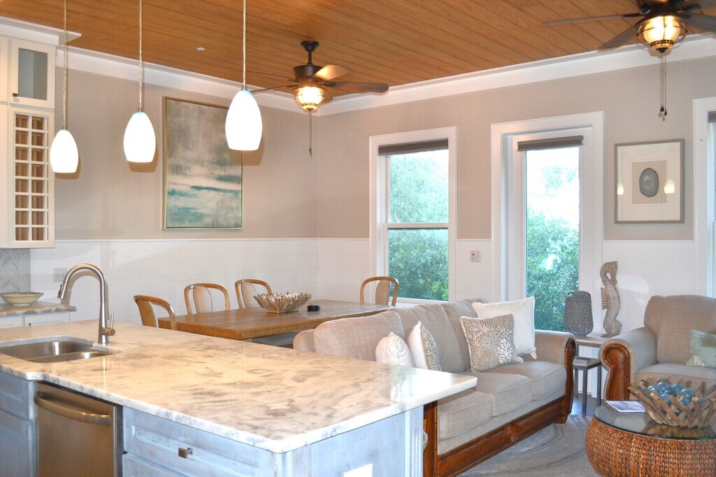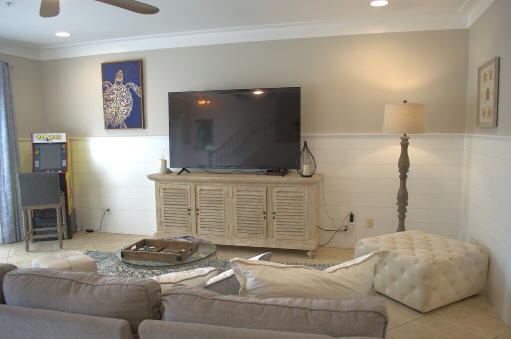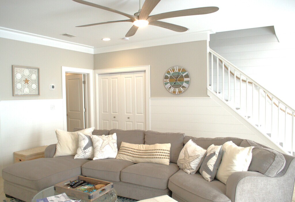 Gorgeous beach days and sunsets await you at Apres Sea! Enjoy this STUNNING 4 bed/5 bath townhome. 200 yards to the public beach access, the home sleeps 10. Decorated with high-end coastal decor. Enjoy sunrise or sunset from the large rooftop deck with a gulf view. Located in Blue Mountain Beach and close to all the west end has to offer. Walk to restaurants nearby. Everything you need is here. Beach chairs, umbrellas, and towels. . The space The first floor of this chic and stylish townhome contains a larger living area with a 75" flat screen TV, the laundry area with a full-size washer and dryer, and a large bedroom with a queen bed and a full-size bed. A full bathroom with a shower/tub combination is accessible from both the bedroom and the living area. Up the staircase, you will find the kitchen, dining area, a second living room, and a bedroom with a king size bed. A bathroom with a stand-up shower is accessible from both the hallway and the bedroom. The kitchen is extremely will equipped for anything you may need during your stay should you choose to cook at home. The living room on this floor has a 55" flat screen TV. The third floor contains the master bedroom with a king size bed and a beautiful en suite bathroom. A large additional bedroom on the third floor contains two queen beds and an ensuite bathroom with a shower/tub combination. The TVs in the two main living areas are smart TVs with cable. All bedrooms contain a flat screen smart TV with with Roku. Up the spiral staircase you will find the piece de resistance - the roof top patio spanning the entire width of the townhome. Enjoy both sunrise and sunset views with a peak a boo ocean view on the sunrise side. Great for enjoying morning coffee or evening cocktails. We have negotiated a 15% golf cart discount with a premier rental company. The discount code is provided with each reservation. The neighborhood has a beautiful community pool that is heated in the winter.