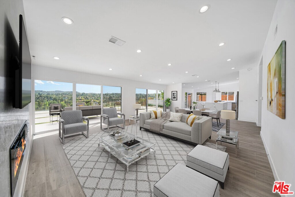 Amazing panoramic views from this single story Woodland Hills home. A gated private entry leads to a newly renovated open floor plan with 4 bedrooms and 4 bathrooms. Brand new chef's kitchen with large island, laminate flooring, new windows, and much much more. Walking distance to schools and shopping. MLS# 26745329