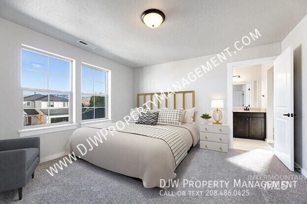 Abundant natural light pours through the large south-facing picture windows, highlighting the beautiful trim work in the great room and dining area. The warm, inviting kitchen is perfect for entertaining, featuring an oversized island and stainless-steel gas range. The generous primary suite offers stunning foothill views, while the en-suite bathroom includes tile flooring, quartz countertops, and a full tile shower. Enjoy an amazing backyard with plenty of space to roam and relax. Ideally situated in highly sought-after SE Boise—just minutes from outdoor recreation, downtown, and the airport—this home delivers both comfort and convenience.