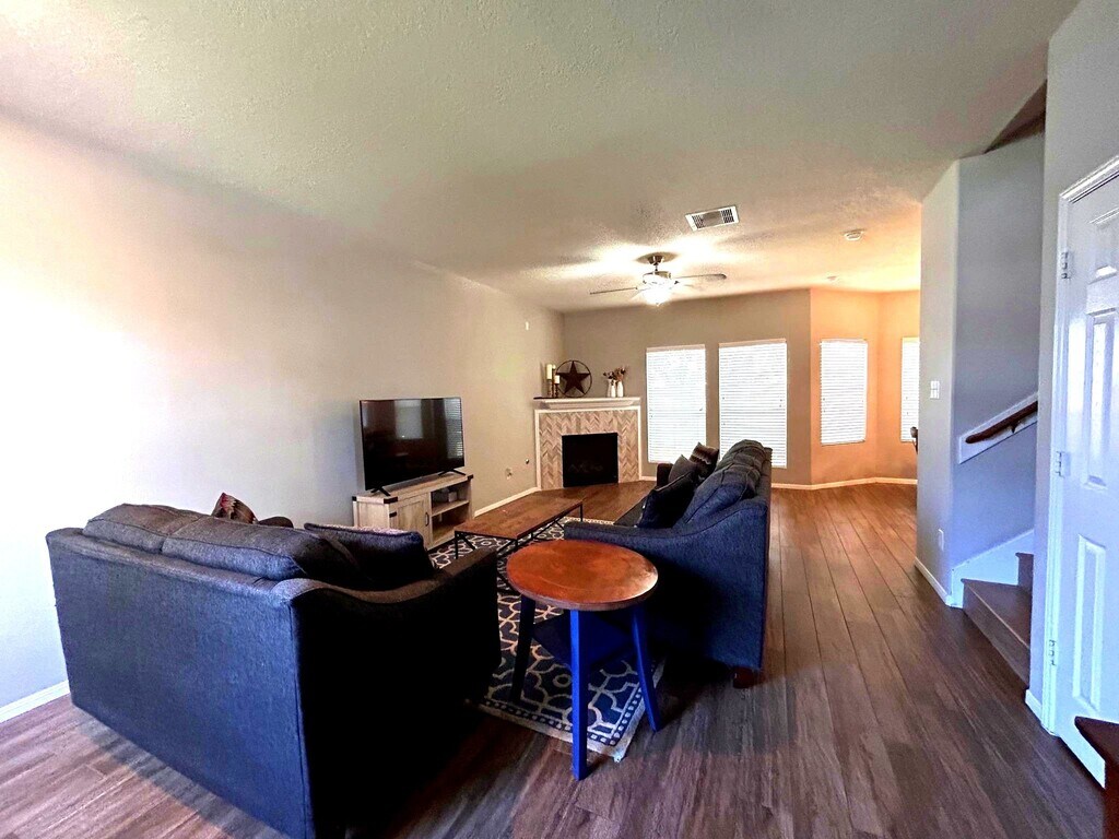 Recently updated 2-story,3 bed,2.5 bath home in the conveniently located community of Forest Village. The island kitchen has been beautifully refreshed with white quartz countertops,subway tile backsplash,elegant pendant lighting,and recent stainless steel appliances including a gas range,microwave,and dishwasher. This open floor plan features neutral paint throughout and a cozy gas fireplace with lovely herringbone marble tile surround as the focal point of the living space. Upstairs offers a spacious game room,a generous primary suite,and two additional bedrooms. Zoned to Conroe ISD and close to community amenities including a neighborhood park and splash pad. Nearby restaurants and shopping just minutes away. Home can be rented furnished,or contact listing agent for information regarding unfurnished. MLS# 70225729