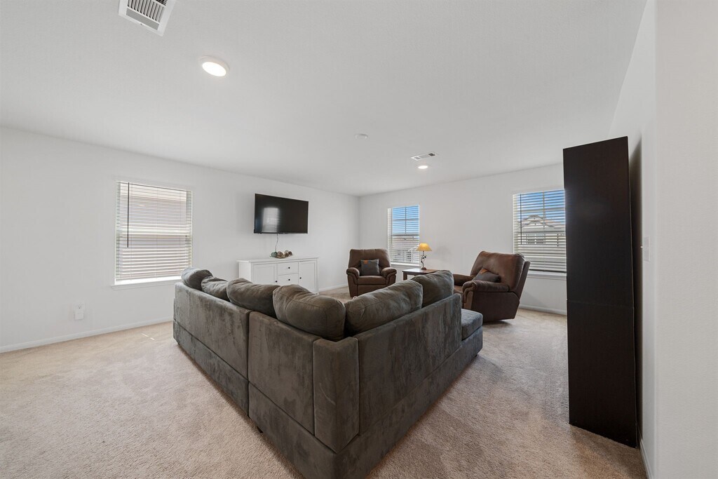 Welcome to your new home in the Windrow community of Hockley. This 4-bedroom,3-bath beauty blends comfort and connection with an open kitchen,dining,and living area ideal for gatherings. The kitchen shines with granite countertops,soft-close cabinetry,a large island,and abundant storage. A downstairs bedroom with full bath adds flexibility,while upstairs you’ll find a serene owner’s suite with double vanity,oversized tiled shower,and a walk-in closet you’ll love. Two additional bedrooms,a second living room,and laundry complete the floor. Quality features include Shaw luxury vinyl plank flooring,custom blinds,ceiling fans in every room,LED lighting,smart wiring,Lennox HVAC,a tankless water heater,and smart thermostat. Step outside to a fully sodded backyard with privacy fencing,stone-lined beds,and a Rainbird sprinkler system. Windrow offers trails,a resort-style pool,courts,and clubhouse—all minutes from 290,Waller ISD schools,outlets,and dining. MLS# 92656695