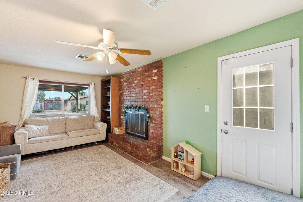 Charming 3-bedroom,2-bath home for rent in North Phoenix in a quiet,no-HOA neighborhood. Spacious great room with an open layout and a separate den with fireplace--perfect for a home office or extra living space. The large corner lot backyard is great for entertaining,featuring covered and uncovered patios,a pergola for shaded gatherings,turf and natural grass,plus an 8x12 storage shed and A/C studio. Solar and a water softener add comfort and efficiency. Close to hiking at Piestewa Peak and near shopping and dining.
