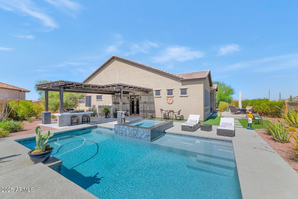 THIS IS A FURNISHED RENTAL THAT IS AVAILABLE SEASONALLY,LONG TERM PRICING,PLEASE CALL FOR BLENDED RATE!! (Jan-Mar $9,495) (Apr,Oct - Dec $6,995) (May - Sept $5,995). This home will truly exceed expectations inside and out. A huge lot at the end of the cul-de-sac with panoramic mountain views at every turn,the setting is truly incomparable with many desired amenities for stellar outdoor entertaining. French doors lead to infinity spa and salt water pool,pergola with built-in bar/island,expansive patio areas with travertine tile,elevated entertaining area with dining table with fire pit and full view wall. The west side of the outdoors offers an additional dining area with table and chairs. The pristine interior embodies high quality enhancements throughout and is immaculate with bright,open floor plan,designer kitchen with long island and upgraded cabinetry and appliances. The Dining Area has custom built-in bar buffet with beverage and wine refrigerators and kegerator. The Expanded Wall of glass in the Great Room introduces the idyllic rear yard backdrop to a fire pit and comfortable chairs for stargazing. Each of the four bedrooms have an ensuite and television. Master suite has two custom closets,large shower and tub. The community of Mountain Bridge offers amenities and activities for all ages and interests with a full calendar of well-planned events throughout the year. Mountain Bridge offers a huge "beach-entry",heated community pool and spa,workout facility,Owners Club and Loggia,Basketball,Tennis,Pickle Ball,Soccer Field,Playgrounds,Walking and Biking trails and beautifully landscaped Open Space and surrounding panoramic mountain views!