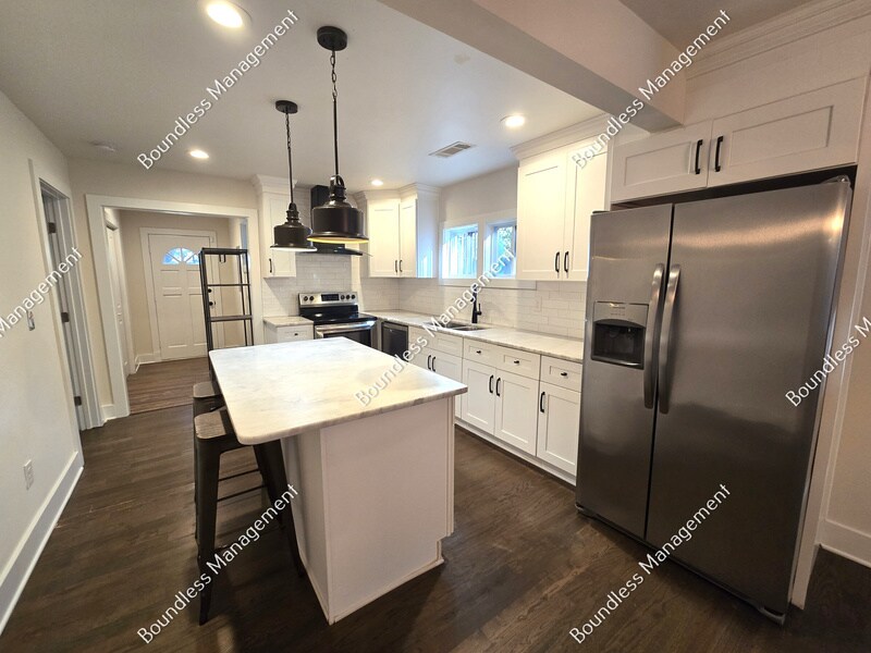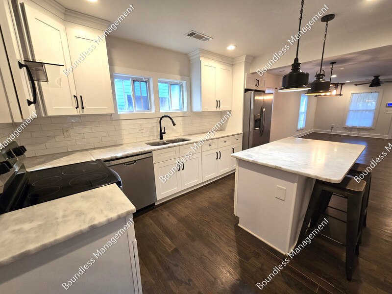 Located on a quiet street in SE Atlanta this charming 1920's Bungalow is minutes from I-75, but you will feel transported to the countryside once you turn on to Burroughs Ave. Situated on a large, level lot with a fully fenced backyard this lovely home offers plenty of privacy. The freshly painted interior was recently renovated and has an open floorplan perfectly suited for your 2025 lifestyle. The spacious living area flows easily into the dining area and then into the Kitchen which has white Shaker style cabinets, marble countertops, an island along with stainless steel appliances. The primary suite is quite roomy with a walk-in closet and ensuite bathroom with double vanity and large walk-in shower. There are two secondary bedrooms that share a cool back & white bathroom. Plenty of outdoor space for relaxing be it the front porch or backyard patio. There's also a carport in the back yard. A washer & dryer are provided for your convenience. Pet allowed with $200 fee & $200 deposit. $85 application fee for anuyone 18 years or older who will live in the property. Renter's insurance required.
