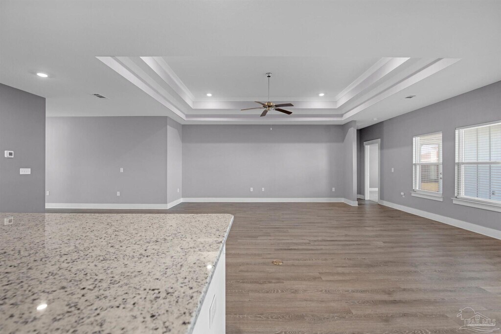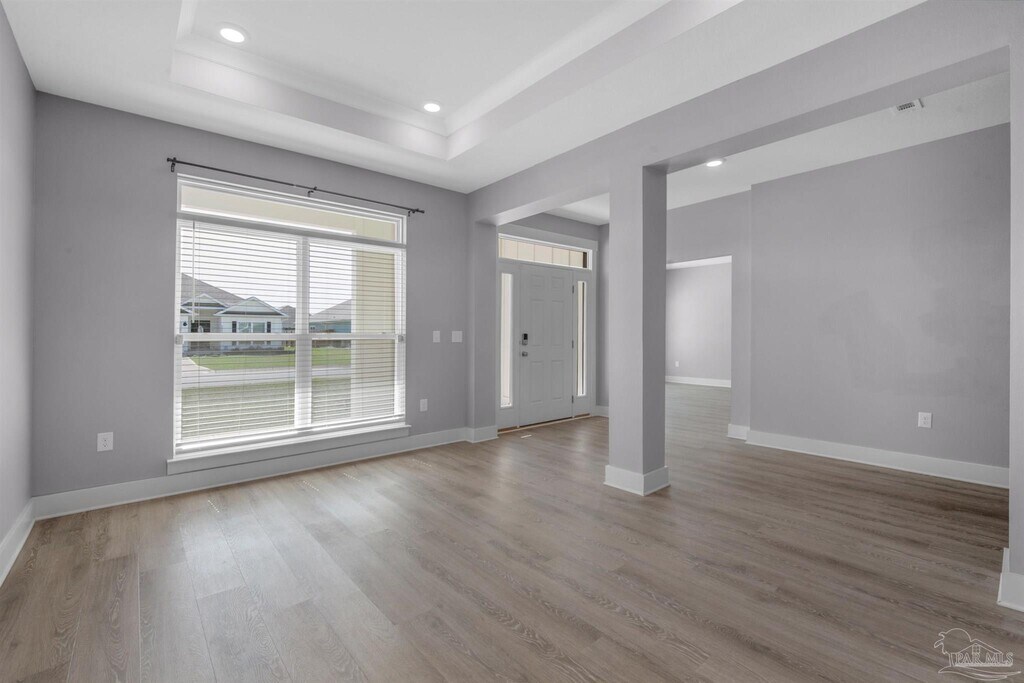 Step into comfort,space,and style in this beautiful 5-bedroom,3-bathroom home located in the highly desirable Forest Bay Estates! Designed with both everyday living and entertaining in mind,this home truly checks all the boxes. At the front of the home,you’ll find a versatile office or flex space alongside a formal dining room—perfect for working from home or hosting gatherings. The thoughtfully designed split floor plan offers two guest bedrooms and a full bathroom on one side,with two additional guest bedrooms and another full bath tucked privately toward the back. The spacious primary suite is a true retreat,featuring direct access to the covered back patio and a luxurious en-suite bathroom complete with dual vanities,a relaxing garden tub,separate 5-foot shower,private water closet,and a custom walk-in closet. The heart of the home is the open-concept living area,seamlessly connecting to a chef-inspired kitchen. Enjoy granite countertops,an under-mount sink,stainless steel appliances,a cooktop,wall oven,built-in microwave,and a large island bar—perfect for entertaining or casual dining. Step outside to your covered patio and fully privacy-fenced backyard,creating the ideal space to unwind or host guests year-round. Conveniently located just minutes from shopping,dining,schools,and more—this home offers the perfect blend of comfort and convenience.