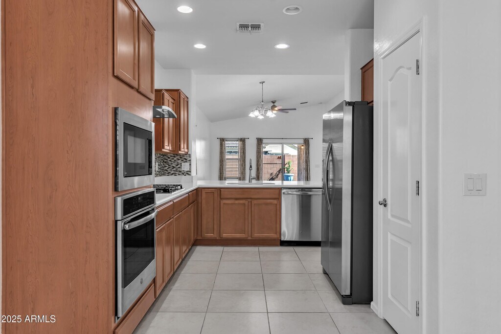 Welcome to this beautifully updated 4-bedroom,2-bath home in the highly sought-after Adora Trails community. Move-in ready and full of charm,it offers the perfect blend of style,comfort,and functionality. Enjoy inviting curb appeal with stone accents,a cozy front porch,mature shade trees,and a spacious two-car garage. Inside,soaring vaulted ceilings,rich wood-look flooring,and a warm neutral palette create an inviting atmosphere. The open-concept layout connects seamlessly to the private backyard,perfect for indoor-outdoor living. The kitchen shines with granite counters,crown-molded cabinetry,stainless steel appliances,and a breakfast bar. Relax in the primary suite with a walk-in closet and dual-sink bath. Enjoy a low-maintenance yard,covered patio,and access to top-rate schools,trails,and resort amenities.