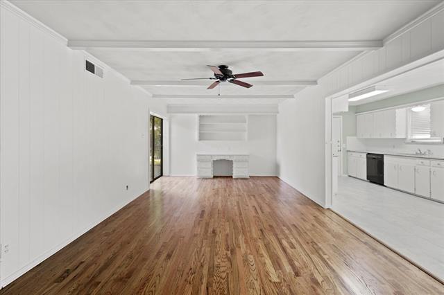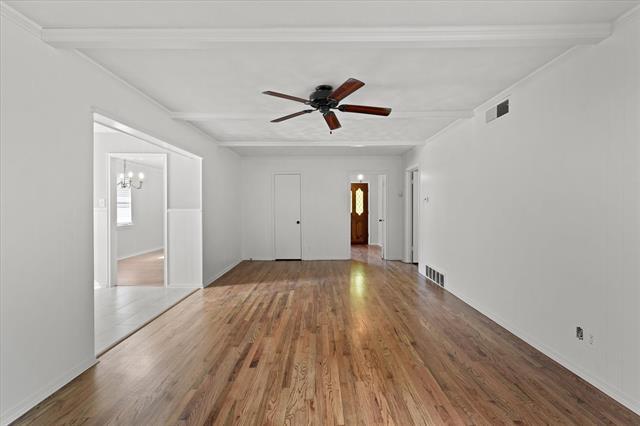 Single story, 3 bedroom, 2 bath, 2 car garage home with ample street and driveway parking. This home has been recently refreshed with new paint, new granite countertops in the kitchen and bath vanity, refinished hardwood floors throughout. No carpet! Retaining original charm from the time it was built, the formal living and dining boast crown molding and a large bay window overlooking the front yard allowing for lots of natural light. A second living area or den with detailed built-ins and white paneling. The galley kitchen connects to a breakfast area. Two of the bedrooms have direct access to a jack-n-jill style bathroom with ceramic tile, stand-up shower, ceiling fans, and a walk-in closet. Hallway bathroom has tile as well. The fenced backyard has mature shade trees. Central East Dallas location with easy access to I-30, Northwest Hwy. Close to White Rock Lake, Casa Linda shopping and restaurants.