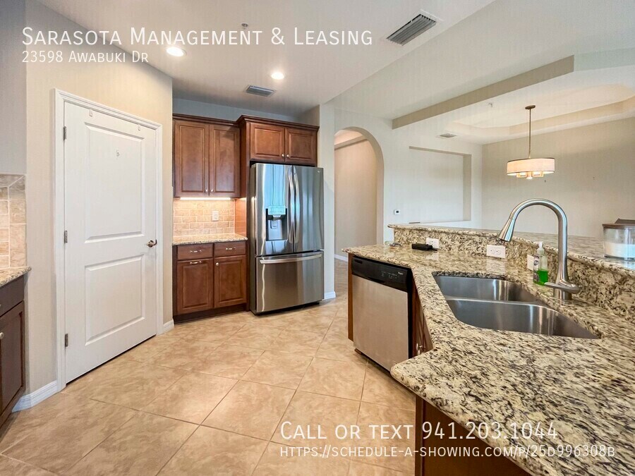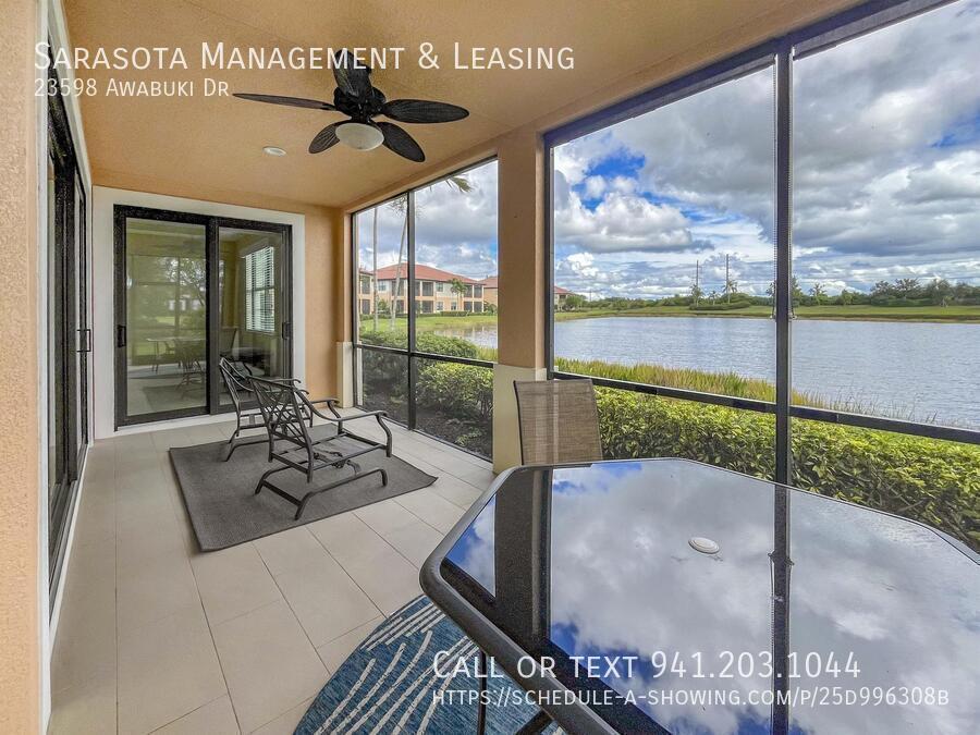 This is a 1st floor 3 bedroom 2 bath condo with a lake view in the golfing community of Sarasota National. This open floor plan condo features a beautiful interior with arch hallways and designer touches including trey ceilings and tile flooring. The living area is spacious with a combined living room, dining area and kitchen. The kitchen has stainless steel appliances, an island with granite countertops and breakfast bar, an under-cabinet lighting system, a tile backsplash and a closet pantry. There is a screened-in patio with ceramic tile and stunning views of the lake. The master bedroom features sliding doors to the patio and a walk-in closet. The ensuite master bath has a walk-in shower and double sinks. There are two spare bedrooms and a spare bathroom with a tub/shower combination. The laundry room has a washer / dryer, there are cabinets that offer additional storage, and a door that leads to the two-car garage. Lawn Care, Water, Sewer, Garbage, Pest Control, and Basic Cable TV are all included in the rent! No commercial or recreational vehicles allowed. Sarasota National regular amenities are plentiful with a resort style pool with lap lanes, 7,000 sq ft fitness center with numerous classes, tiki bar, lighted tennis courts, pickleball, bocce, dog park, playground area, Palm Clubhouse with restaurant and bar and several activities published in the monthly newsletter. The owner does not have a membership to the golf course to transfer to a tenant. There is a required Golf Membership Transfer fee of $1,000 that is paid to the community by the tenant during the application process. There are upcoming renovations that will be done to the Golf Course, please check with the HOA for most current dates. We score every application. If an application doesn’t score high enough, the resident may be required to place the equivalent of two months’ rent in a security deposit. Please be aware that leasing this property includes a non-optional Home Assistant Services Package that will cost an additional $30 per month. These services and their cost are separate from Tenant’s monthly rent payment and all other payments described in the Lease or any separate Lease addendums. The Home Assistant Services offered are described in the Resident Welcome Packet which can be viewed here: 1 Pet Max, Dogs with Breed Restrictions US-41, Shopping, Restaurants Venice Schools 2 Car Garage Stainless Steel Appliances, Island, Granite Countertops, Breakfast Bar, Under-Cabinet Lighting, Tile Backsplash, Closet Pantry 1st Floor, Open Floorplan Screened-In Patio, Lake Views, Community Pool, Tiki Bar, Fitness Center, Pickleball, Tennis, Bocce Ball, Dog Park, Playground Garbage included Sewage included Clubhouse Community Pool Pest Control Included Screened Porch Sewer Included Tennis Courts Trees / Shrub Care Included Two Car Garage Water Views