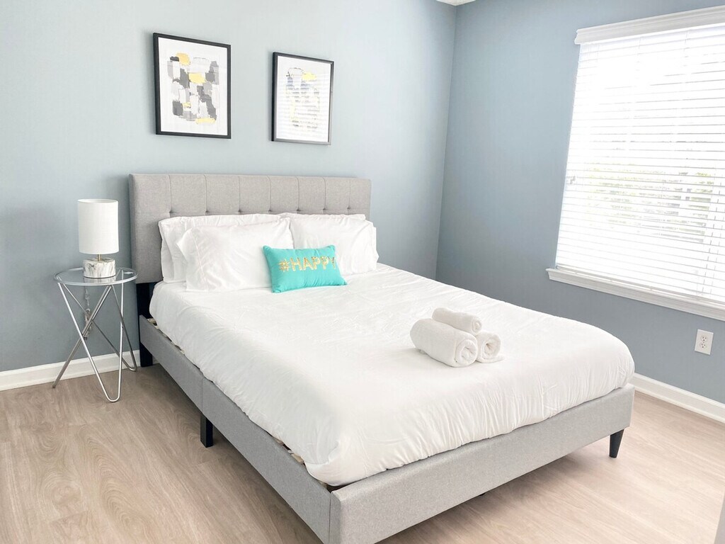 Enjoy a stylish experience at this centrally located home, just minutes from Chateau Elan Resort, Road Atlanta, and Lake Lanier. With easy access to highways, commuting to your event is simple and quick. Nestled in a quiet, nice, and safe neighborhood, this home is perfect for leisure trips or business travels. Feel the comforts of home in this clean and beautiful space. The living room features a comfortable couch and a 50+ inch TV, along with a desk and chair for a perfect work-from-home set-up. The kitchen, though not fully equipped to the quality of your home, includes a full-sized refrigerator, microwave, oven, coffee maker, and basic kitchenware for simple meals. Enjoy meals at the cozy dining table and chairs. Parking is available for a maximum of 3 standard-size cars, with 2 cars in the driveway and 1 along the fence on the grass. Visitor parking is available at the community entrance, but street parking is strictly prohibited. Mid-stay cleaning services can be requested for an additional fee. Prime location surrounded by shops, restaurants, and more. Ideal for medical professionals, business or corporate personnel, and insurance clients, this home offers convenience and accessibility to various attractions and amenities. Check-in is at 4 pm, and check-out is strictly at 10 am, with a penalty fee of half the night’s stay for late check-out. No smoking, including electronic cigarettes, is allowed inside or outside within 10 ft of the property, with a $250 cleaning charge for violations. No loud noise, parties, or events that disturb neighbors are allowed. The maximum capacity is 10 people, with no overnight visitors not listed on your reservation. Unregistered guests will incur a $50 charge per guest per night. Pets are not allowed unless authorized, with a nonrefundable fee of $150 per pet per stay for small pets under 25 lbs. The property is equipped with 24/7 security cameras outside for added safety. Guests must include all guests, including children and infants, in their booking and provide full names and ages 24 hours before or after check-in. The guest whose account is used for booking must be present at check-in. The property is pet-free unless prior authorization is given, and guests must follow the pet policy if approved. The home is professionally cleaned and sanitized after each use, with no daily housekeeping included in the rental rate. Guests are responsible for purchasing their needs for the duration of their stay. The property is located in a tropical climate, and while efforts are made to minimize pests, their presence does not constitute a breach of agreement. Violations of house rules may result in immediate cancellation of the reservation without a refund. The living space includes a desk and chair, making it perfect for a work-from-home set-up. Free Wi-Fi is available throughout the home. [SI]