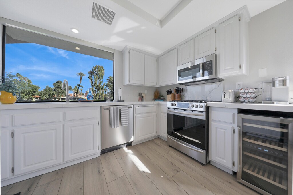 Welcome to this stunning home in Monterey CC,featuring 2 bedrooms plus a den that the owner has added a bed to,and 2 bathrooms. Enjoy a blend of elegant tile and plush carpeting throughout. The airy kitchen boasts quartz countertops and stainless steel appliances,including a wine fridge,all while offering captivating views of the tranquil waterway and mountains. Relax in the inviting living room,complete with a fireplace,and step out to the extended patio with plenty of space for entertaining. This is the perfect seasonal rental for those seeking comfort and style in a picturesque setting! MLS # 219111462