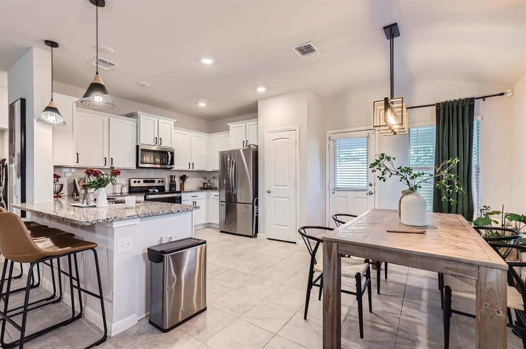 This 2021-built home offers 1,600 sqft of modern living on a spacious 0.29-acre lot in Burnet’s Pepper Mill subdivision. It features 3 bedrooms, 2 bathrooms, an open-concept layout, and a kitchen outfitted with granite countertops, stainless steel appliances, and white cabinetry. The living and dining areas are bright and inviting, creating an ideal space for relaxing or entertaining. The primary suite includes large windows, plush carpeting, and an en-suite bath for added comfort. The backyard is expansive with a covered patio—perfect for outdoor gatherings, gardening, or play. With a two-car garage, full laundry room, and thoughtful design throughout, this home is move-in ready and conveniently located near schools, parks, and downtown Burnet.