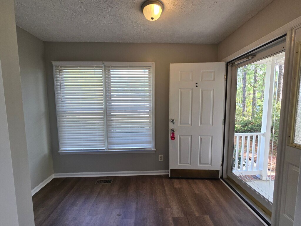 Welcome to this stunning 3-bedroom, 2-bathroom home located in the desirable Sanford, NC. This newly renovated property boasts fresh paint and new flooring throughout, creating a modern and inviting atmosphere. The master bedroom is conveniently located downstairs, offering easy accessibility. The home is situated in a gated and guarded community, providing an added layer of security. The community amenities are sure to impress, with a sparkling pool, well-maintained tennis courts, and a fitness trail for those who enjoy an active lifestyle. For those who prefer tranquility, the property offers lake access, perfect for serene walks, boating, fishing or relaxing afternoons. The house also features a large, fully fenced backyard with an oversized deck, providing ample space for outdoor activities. This home is a perfect blend of comfort, style, and convenience.