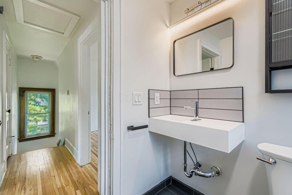 Enjoy an oversized living room,separate dining room,and two spacious bedrooms with five total closets upstairs. The designer kitchen features leathered granite countertops,a stainless island,high-end cabinetry,and all new appliances including a dishwasher,refrigerator,oven/range,and garbage disposal. The remodeled bathroom offers matching granite and a waterfall shower head,and the refinished hardwood floors add warmth throughout. The clean,dry basement provides additional flexible space for a home office,gym,or storage,with in-unit laundry. Located in a quiet neighborhood just blocks from a great local coffee shop and Moler Park,with Schiller Park and all of German Village steps away. No pets. First month's rent and security deposit due at signing. Tenant is responsible for all utilities.