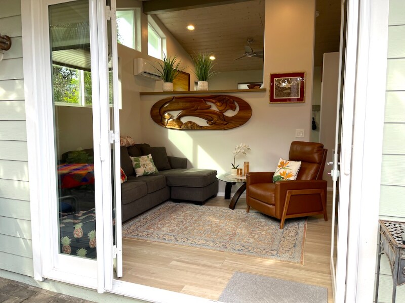 Property Id: 2195391 Zen Beach Cottage - 1 Block to Ocean, Walk to Downtown! Fully furnished 500 sq ft mid-term rental in the heart of Encinitas. This charming beach cottage offers a private yard, separate entrance, and artistic design throughout. Enjoy a full kitchen, cozy living space, 1 bed/1 bath (separated by a half wall), and in-unit washer/dryer. Fast WiFi and bi-weekly cleaning included. Relax in your outdoor seating area or stroll one block to catch stunning sunsets. Just 0.25 mi to Moonlight Beach, cafes, bars, shops, and the train station. Street parking nearby. Ideal for remote workers, creatives, or traveling professionals seeking a peaceful, walkable retreat.