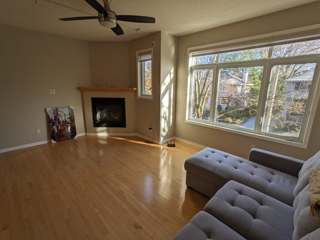 Only steps away from the Kichi Zibi Mikan, this 3 story townhouse is nestled just off of island park drive by the Champlain bridge. Entering through the front door, you'll find a 2 piece bathroom, laundry/storage room, a small room which is ideal for an at home office or gym space, and garage access. Heading up a flight of stairs you'll enter into an large open concept living/dining room with large windows, hardwood floors and a fireplace. Its the idea space for those who like to entertain or cozy up and watch the snow fall during the winter. The kitchen sports all the expected appliances, a double sink and a breakfast bar. It also has space for a small kitchen table and a balcony with enough space for a bistro table and chairs. Heading up to the third floor, you'll find all 3 bedrooms, full bathroom and master bedroom with walk-in closet and ensuite bathroom. All 3 bedroom and hallway contain carpet flooring. The house is heated with a forced air gas furnace, cooled with central air conditioning. The until will have window coverings installed for the tenant to use. The living room and Mater bedroom also contain ceiling fans for better air circulation. The basement remains unfinished and is ideal as a large storage area. A automatic garage door opener has been installed for ease of access to the garage. This area is very quiet, with direct access to parks, trails and bike paths. Tunney's pasture government complex is only a few minutes away by car and 20 minutes walking distance. For those who take transit, Westboro transit station is approximately a 7/8 minute walk. The tenant will be responsible fore the following utilities: Gas, Hydro, Water/Sewer, Internet First and last is required and a credit check will be completed. Looking to lease for one year minimum. This is a non smoking unit. No pets please.