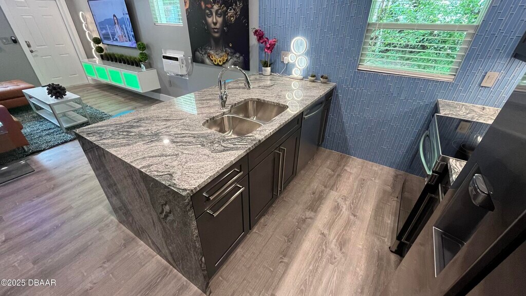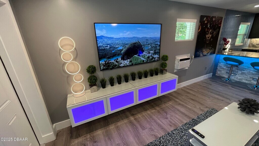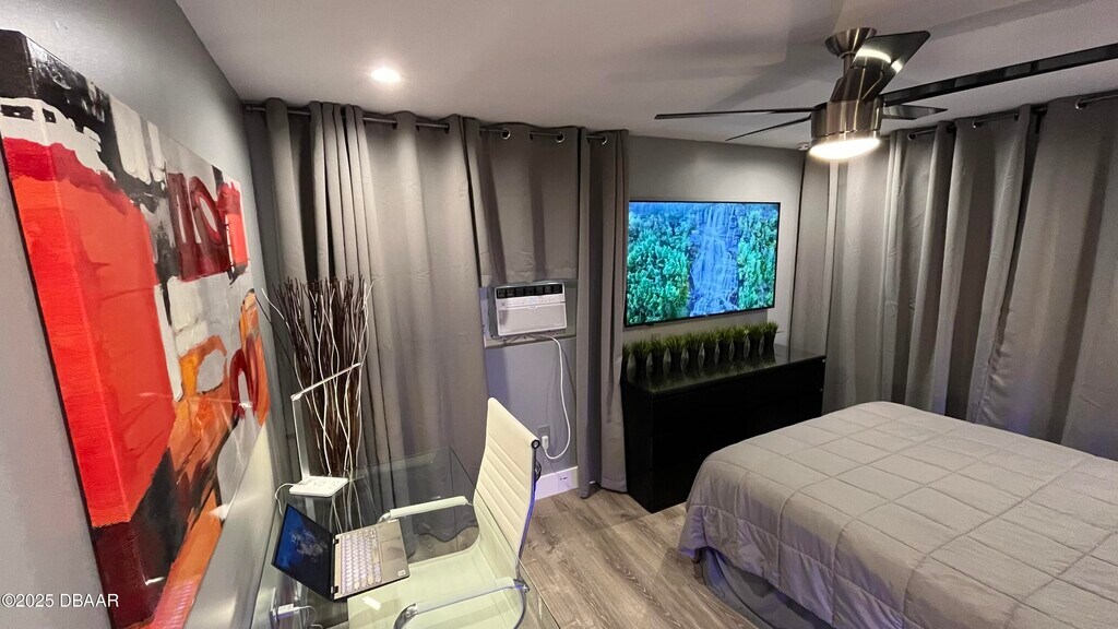 Open NOW. Fully furnished and all utilities included. Modern one bedroom apartment,with high end finishes everywhere. This standalone apartment has a gourmet kitchen with granite countertops,stainless steel appliances,large island with eat at bar area,pantry cabinet,pull out trash and recycling,and recessed lighting. Large bathroom with walk in shower featuring floor to ceiling tile,rain shower head with body spray,tongue and grove wood ceiling,and recessed lights. Bedroom features large walk in closet with front load washer and dryer. Queen pillow top mattress,computer desk with office chair and high speed Wi-Fi with dedicated router. Hardwired ethernet connections in the kitchen and bedroom desk area for those looking to work from home. Ceiling fans in the living room and bedroom,recessed lights throughout the apartment,all on dimmers for setting the perfect mood. The apartment is fully furnished and decorated with modern stylish art. No expense was spared in crafting the perfect ambiance. RGB LED mood lighting in various locations. 65" Roku Smart TVs in the bedroom and living room. The apartment has a dedicated parking spot with a 20amp 120volt outlet for charging EVs. All utilities included in the monthly rent. Centrally located in Daytona Beach only a few miles from local colleges,ERAU,DSC,BCU,Daytona Beach airport,Flight Schools,Halifax Hospital and a quick 10 minute drive to the beach. No Pets,No Smoking,No Drugs,No Excessive Drinking,No Slobs and No Party People. Flexible rental terms 1 year lease,or month by month,move out anytime with 30 days notice. Deposit plus first month's rent moves you in.