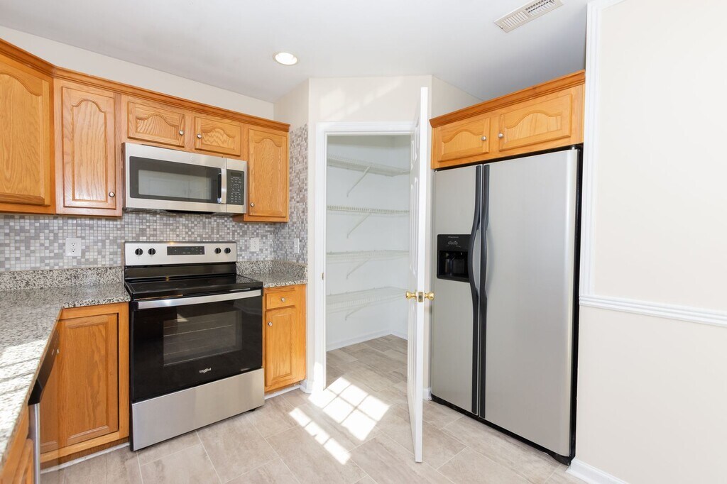 Discover this stunning residence situated on a spacious lot. As you approach, the expansive covered front porch will surely capture your heart. Once inside, hang up your coat in the convenient coat closet and be greeted by the beautiful bamboo flooring that flows throughout the living room. This inviting space features a fireplace with a custom niche, perfect for displaying your television or favorite artwork, providing an excellent focal point. As you move towards the kitchen and dining areas, you'll notice a half bath on the first floor along with an additional storage closet, which could serve as a second pantry. The kitchen boasts granite countertops, stainless steel appliances, and a pantry, making it ideal for culinary conversations and gatherings in the dining area. The open concept kitchen/dining area allows for easy interaction, and there’s even the option to add bar stools for extra seating. Natural light floods the dining area, which includes sliding glass doors that lead to the back deck and a fantastic yard. All three bedrooms are conveniently located on the second floor, along with a laundry room. The two guest bedrooms are adjacent to the guest bathroom, while the primary bedroom serves as a true retreat, featuring a private bath with a stand-alone shower, a large soaking tub, and a walk-in closet. Venture down the hall to find a versatile flex space, a generous room with endless possibilities—it could serve as a den, playroom, office, crafting room, and more. Now, let’s head back downstairs and step outside. The large, fenced-in yard at the back of the home is bordered by trees on the right side, providing both space and privacy. Attached to the home is a two-car garage for your convenience. Plus, the property is located within the highly sought-after Richlands school district. This home perfectly blends style, comfort, privacy, and functionality.
