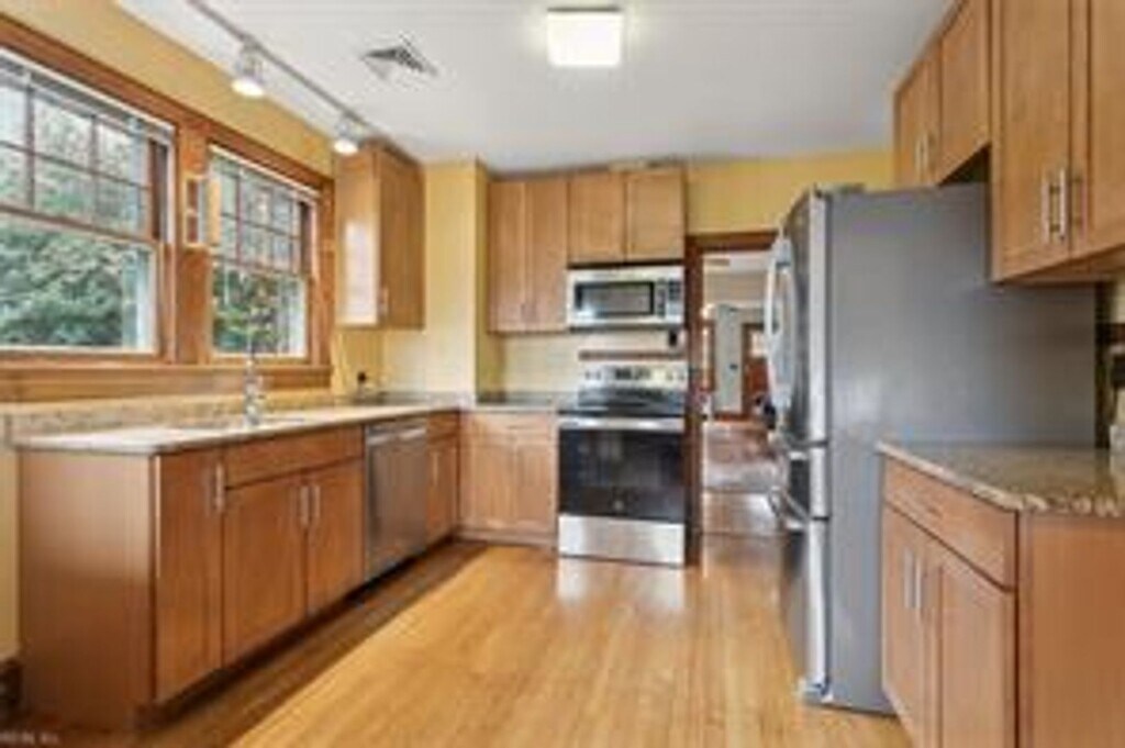 Charming Bungalow in the Wythe area of Hampton! This 2-bedroom features an updated kitchen with granite countertops, stainless steel appliances, and new cabinets, along with a breakfast nook. The home includes a family room with a wood-burning fireplace, a formal dining room and hardwood flooring is throughout! The exterior boasts a one-car garage, a cozy front porch, and on a corner lot.