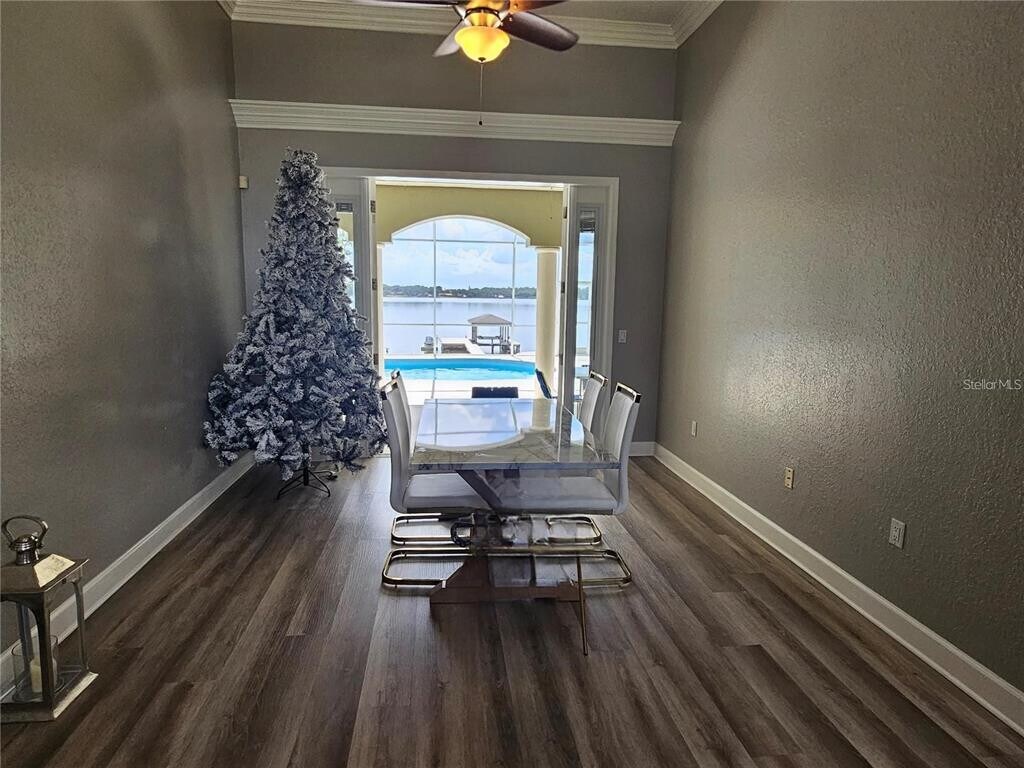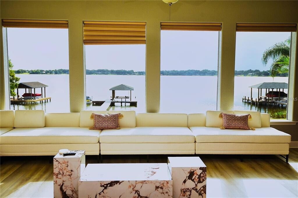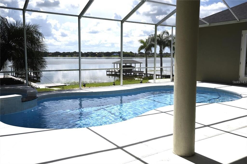 One or more photo(s) has been virtually staged. Wake up every morning to the most breath taking views imaginable. Almost every room in the home overlooks the spectacular private Lake Ruby & Lake Bess. Upon entering the home you will find yourself captivated with the spacious and luxurious open floor plan and high degree of natural light that envelops you. Besides having the exquisite view,this home also features a screened in pool and spa with lost of room to entertain. Both the pool and jacuzzi were resurfaced just a couple of years ago. The house,which was built in 2000,has many alluring features including a 3 car garage,cathedral ceilings,an extra large master suite,formal living room,and a family room with a fireplace over looking the lake. This property also features the use of you own private doc,boat house with life and a very important boat ramp since there is no public access to the lake. Please note: the rental includes $300 toward electric and $100 toward the water bill each month. An additional overages will be du by the lessee,Nature calls to those who enjoy water as fishing,boating,and skiing are outstanding on clean Ruby Lake,Some of the best views are from this home. Since it is connected to Lake Bess there are also two slalom courses nearby. The Ruby Lake community is gated an is also close to shopping and restaurants. Hwy 27 is only about 2 miles away. It is only 1 mile to Legoland. After enjoying all of the daily activities this property and nearby attractions,the home offers the night time sunsets that are gorgeous and a wonderful way to end the day. Both Tampa International and Orlando International airports are close by MLS# B4902182