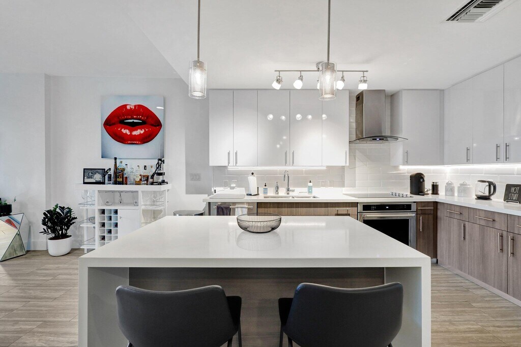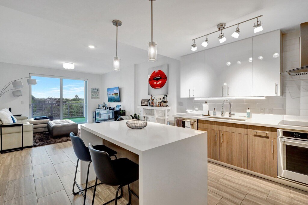 Welcome to this stunning, rarely available seasonal rental in one of Delray's newest luxury condo buildings, 236 Fifth. This 1 bedroom, 1 bathroom condominium has a spacious den that is being utilized as a dining room. Enjoy an open floorplan featuring a waterfall kitchen island, KitchenAid appliances, and stunning modern finishes. 236 Fifth Avenue is a full amenity building that allows residents to fully utilize the Aloft Hotel facilities including a stunning pool, gym, splash bar, full restaurant, owner's terrace, and club room. Located just a mile from the beach and two blocks from famed Atlantic Avenue, you won't want to miss the opportunity to call this newer condo home, in the heart of downtown Delray Beach.