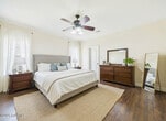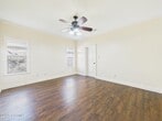 This meticulously maintained home has been designed with comfort and style in mind. Enjoy an oversized living room with a corner fireplace, gleaming wood floors, and inviting neutral colors throughout. The kitchen is a standout feature, offering ample cabinet space and a large snack bar - perfect for anyone who loves to cook or entertain.The primary suite includes a double sink vanity, separate shower, and relaxing whirlpool tub. No carpet anywhere for easy cleaning and low maintenance. Outside, unwind in the spacious backyard or enclosed sunroom. Please note: any photos with furniture have been virtually staged. The property itself does not come with furniture.Character, quality, and move-in ready condition-this home has it all.
