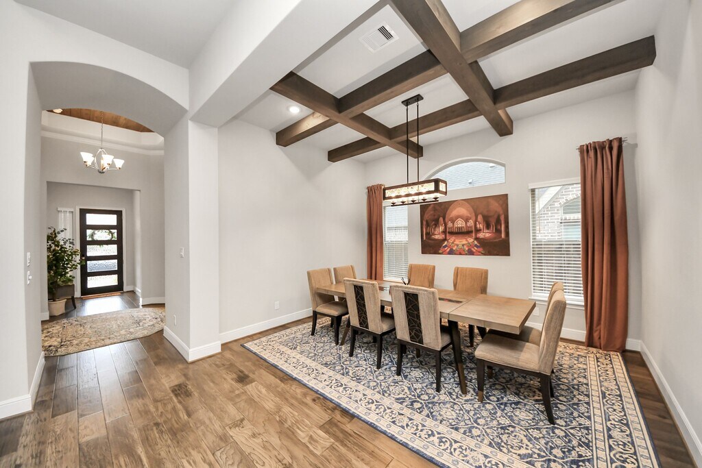 Welcome to this immaculately maintained Coventry residence located within the highly desirable master planned community of Veranda! This STUNNING one-story residence boasts 4 bedrooms,along with 4 full bathrooms,an attached 2-car garage,and over $100k in upgrades! Enter to find a grand foyer with wood accents,upgraded tile flooring,high ceilings,and BIG WINDOWS. Explore the open floor plan to discover a gourmet kitchen that has stainless steel appliances,5 burner stove,OVERSIZED center island,and spacious pantry. The kitchen flows into a light-filled dining area with BIG windows and WOOD BEAM ceilings,while the living room features a gas log fireplace,and expansive sliding glass doors that open to a covered patio creating effortless indoor-outdoor living! The primary suite showcases a spa-like bathroom that includes his and her walk-in closets,double vanities,& soaking tub! The home also features a media room,game room,private office,and spacious secondary bedrooms! MLS# 39430997