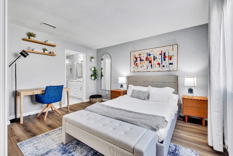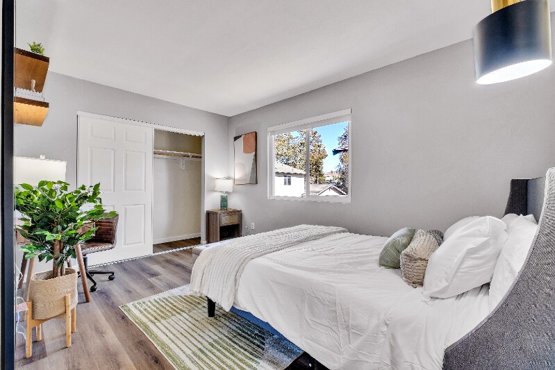 Property Id: 2235614 Newly renovated modern condo just 4 minutes from UC Riverside! Open floor plan with desks in every room, stylish furniture, and fully stocked kitchen with brand-new appliances. Enjoy a walk-in shower and bathtub, Roku TV, high-speed WiFi-6, air conditioning, and in-unit washer/dryer. Gated community with pool, 2-car garage plus open parking. Perfect blend of comfort, convenience, and modern living near campus.