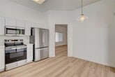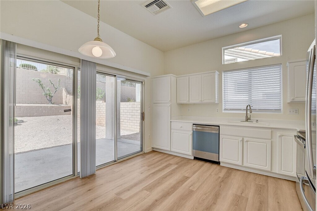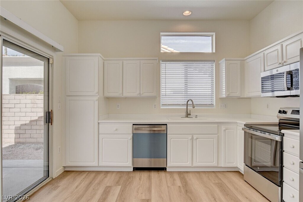 Welcome home to this charming and move-in ready single family residence in Sun City! This inviting, freshly painted property offers new luxury plank flooring, all new stainless appliances, updated cabinets, and spacious living and dining areas, perfect for both relaxing and entertaining! Enjoy added privacy with a thoughtfully positioned primary bedroom. The versatile second bedroom is ideal as a home office, guest room, or cozy craft space. Step outside to a wonderful covered patio featuring a BBQ stub—perfect for outdoor dining and entertaining—all overlooking a fully fenced backyard. Ideally located near top community amenities including The Summit, Pinnacle Clubhouse, Starbright Theater, and Eagle Crest Golf Course, this home offers the best of Sun City living. Don’t miss your chance to enjoy this vibrant lifestyle—schedule your showing today!