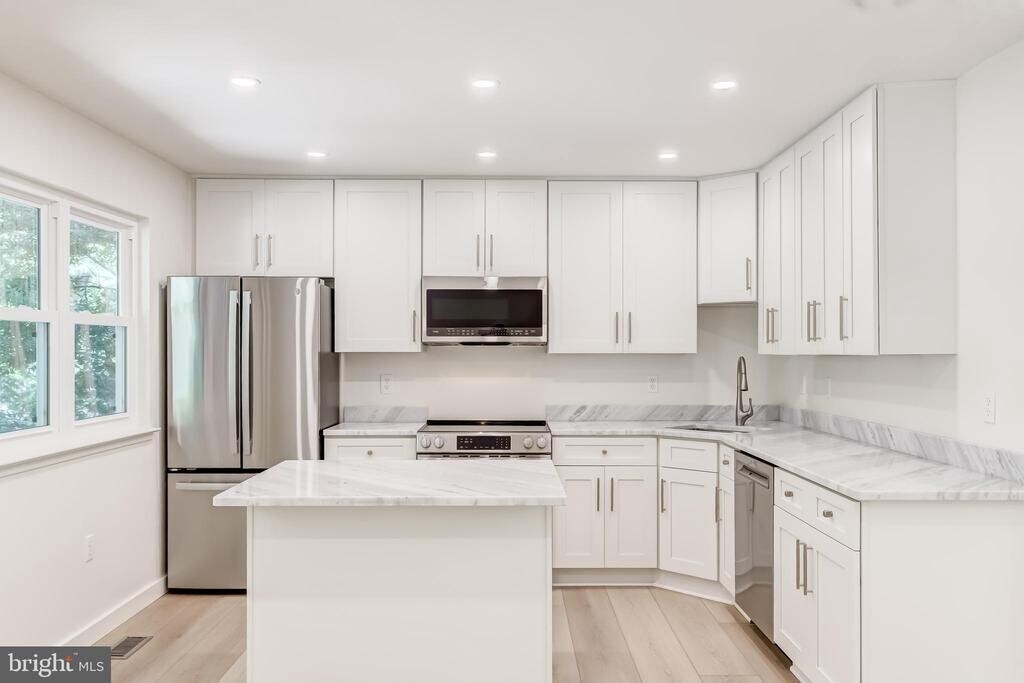 This beautifully maintained 3-bedroom, 2-bath end-unit townhome offers the perfect blend of comfort, style, and convenience. Featuring an open floor plan with luxury vinyl plank flooring throughout, the home exudes warmth and modern appeal from the moment you walk in. The bright and spacious eat-in kitchen is a true highlight, complete with quartzite countertops, stainless steel appliances, a center island, and crisp white cabinetry. Just off the kitchen, the inviting living room provides a seamless space for entertaining or relaxing. The lower level walk-out offers a large recreation room with a cozy fireplace—perfect for movie nights or quiet evenings in. You’ll also find a convenient laundry area with washer and dryer included. Upstairs, all three bedrooms are generously sized, offering ample space for rest and relaxation. Step outside to enjoy a fenced-in backyard with decking, ideal for morning coffee or weekend gatherings. Residents can take advantage of the community’s exceptional amenities, including swimming pools, playgrounds, bike trails, and basketball courts. Whether you’re looking to stay active or simply unwind, this neighborhood has something for everyone. Perfectly located in the heart of Reston, this home is just minutes from the Reston Community Center and nearby shopping centers offering restaurants, grocery stores, and more. With easy access to Reston Parkway, Routes 66, 267, and 495, commuting is effortless.