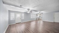 The open concept floor plan uses the square footage well. There is plenty of room to design your living space to your needs in the large living and dining room combination. Bring your own refrigerator to add to the nice range-oven and dishwasher in the kitchen. Utility room is ready for your washer and dryer with built in cabinets and door to backyard. You'll appreciate the serenity of the wooded neighborhood on the wood deck or in the backyard.