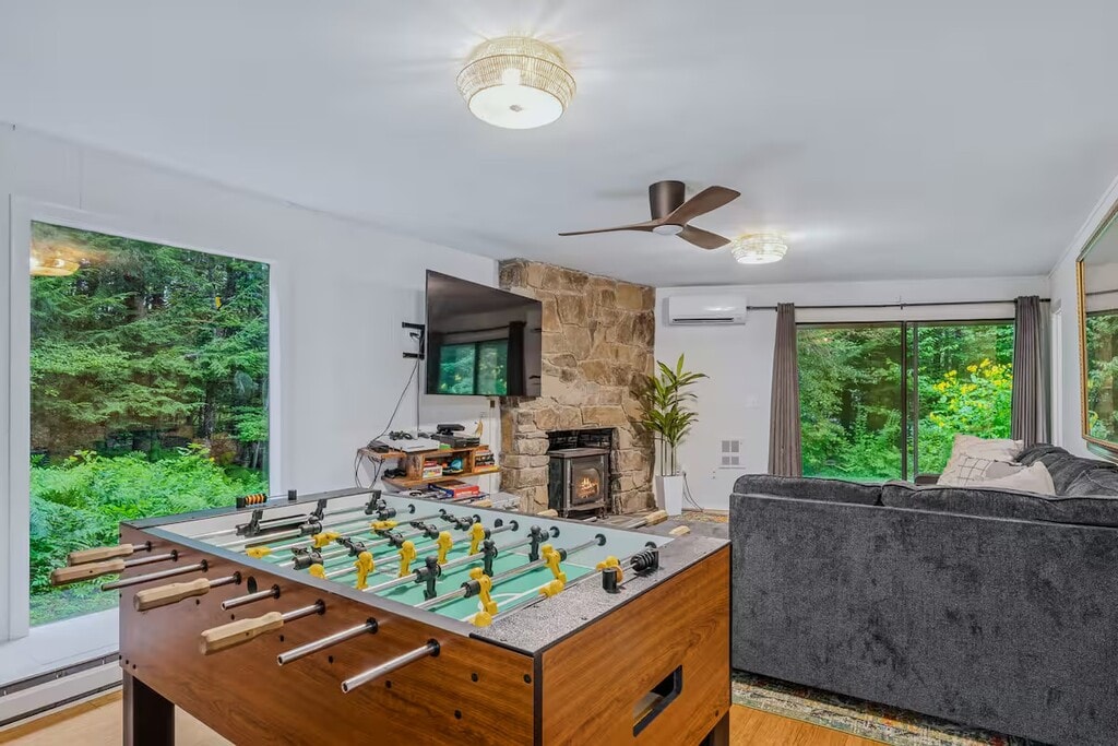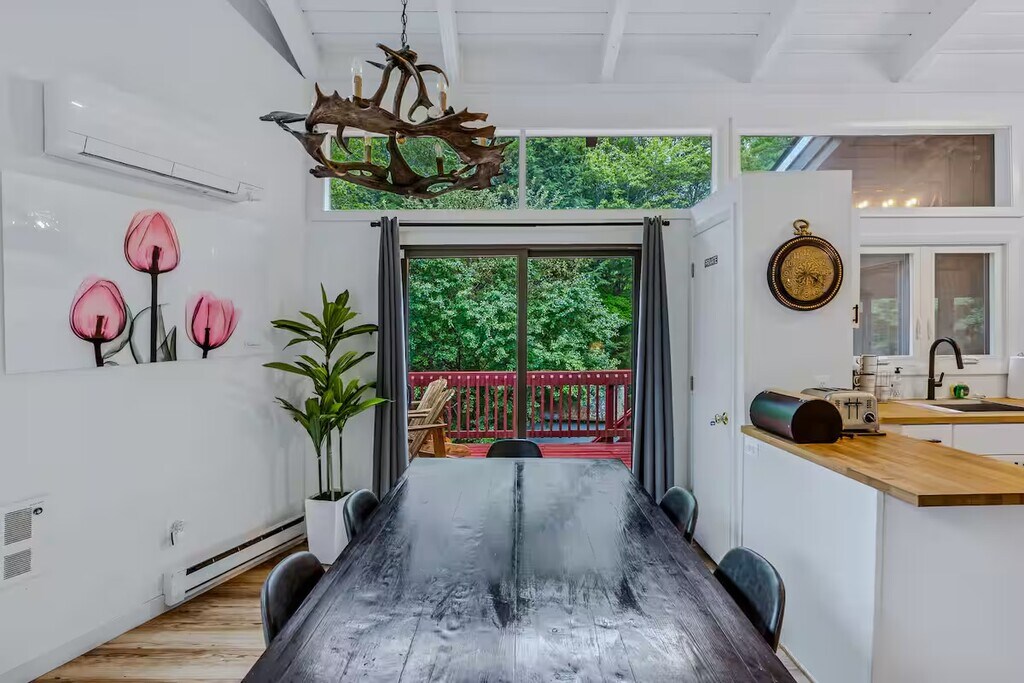 Experience the all-new Gathering Place, freshly renovated with a gourmet kitchen, luxurious primary suite, and sun-filled living areas. Relax in your private hot tub, unwind in the sauna, and take advantage of amenities like high-speed Wi-Fi, game room, Tesla charger, and exclusive paid access to The Quechee Club. Please SEE: Other Things to Note For Area Details, Please SEE: The Neighborhood & Getting Around *Pet Friendly, fee applies per pet. The space The Gathering Place, Home Features: • Recently Renovated - New kitchen cabinets, countertops, and windows, plus more! • 4 Bedroom, 3 Bath - Available for up to 8 Guests! • New Hot Tub & Sauna • Games: X-Box, Ping Pong Table, Life-Size Connect 4 • Garage Offers Tesla EV Charger • Free WiFi & Smart TVs Welcome to The Gathering Place—your cozy luxury retreat nestled in the heart of Quechee, Vermont. This beautifully renovated four-bedroom, three-bath home is the ultimate all-season escape, thoughtfully designed for families, couples, remote workers, and adventure seekers alike. Step inside to discover spacious living areas with vaulted ceilings and impressive prow windows that fill the home with natural Vermont light. Gather around the warm gas fireplace in the main living room, or unwind in the sunroom, where ample seating invites you to enjoy games, cocktails, and the brilliant colors of fall foliage. The fully renovated kitchen is a chef’s delight, featuring stainless steel appliances and a farmhouse sink, seamlessly connecting to the open-concept dining and living spaces—perfect for entertaining or simply relaxing after a day of exploring. The serene primary suite offers a queen bed, a spa-style bathroom with a soaking tub, and a standing desk for those who need to catch up on work. Upstairs, you’ll find a cheerful guest room with two twin beds and a study table, plus an attached bath, while the lower level boasts two additional queen bedrooms and a shared full bath. After a day on the slopes or hiking Vermont’s scenic trails, soothe your senses in the private sauna or slip into the outdoor hot tub under the stars. The garage game zone is a hit with guests of all ages, offering ping pong, life-size Connect 4, foosball, and an Xbox for endless entertainment. For eco-conscious travelers, a Tesla EV charger is available, and the home is pet-friendly for up to two dogs with approval. Year-round comfort is guaranteed with mini-split heating and cooling in all bedrooms and the living room, plus a cozy gas fireplace for those crisp Vermont evenings. Best of all, your stay includes access to The Quechee Club(You will be responsible for dues)—Vermont’s premier four-season private community. Tee off on championship golf courses, swim at Lake Pinneo, kayak, fish, or enjoy dining at Dewey’s Deck and Davidson’s in the summer. Winter brings family-friendly skiing, snowshoeing, cross-country trails, and après-ski gatherings. Year-round amenities include a modern fitness center, tennis and paddle courts, hiking trails, wellness programs, and special events for all ages. Situated just minutes from the charming village of Woodstock, Hanover, and the iconic Quechee Gorge, The Gathering Place is perfectly positioned for exploring local attractions like Simon Pearce Glassblowing and Lake Pinneo, with Killington and Ludlow ski resorts only a short drive away. Whether you’re seeking a relaxing family getaway, a pet-friendly adventure, or a remote work haven, The Gathering Place blends Vermont charm with modern luxury—making every season a new opportunity for unforgettable memories. Book your stay today and experience the best of Quechee, Vermont, with all the comforts of home and the amenities of a world-class resort. Paid Access To: The Quechee Club This home offers exclusive access to The Quechee Club. There is something for everyone at The Quechee Club, an outdoor enthusiast's haven and every outdoor whim. In the summer months, members and renters can enjoy several outdoor activities. The Club offers two championship 18-hole golf courses, Lakeland & Highland, with stunning scenery and conditions. Tennis courts are spread throughout the community with professional tennis lessons and enjoyable competition. Renters can also enjoy the state-of-the-art aquatic center featuring an indoor & outdoor pool with an active kid's zone. Likewise, you can venture over to the beach at Lake Pinneo and rent a kayak or canoe. Then head to The Club to enjoy a cocktail by the pool, a meal on Dewey's Deck, or fine dining at Davidson's. In the winter months, Ski Quechee is our featured amenity. Open Friday through Sunday, take the family out for an exciting day on expertly groomed terrain. You can enjoy our wonderful base lodge and après ski gatherings with activities for the whole family. The Club also maintains heated platform tennis with warming huts through the cold months to keep your paddle game sharp. The Club features a full winter recreational calendar, including snowshoeing, x-country skiing, sledding, and much more! Outside of our seasonal offerings, there is so much more at Quechee. The Club offers a modern fitness center with daily fitness classes and top-notch equipment. Hiking trails are spread throughout the community woods. Quechee is home to several special events and incredible dining experiences. To elevate your experience further, indulge in the diverse dining options available at The Club House. Amazing 4 bedroom, 3 bathroom house in Quechee. Amenities included: balcony, deck, dishwasher, hardwood floors, stainless steel appliance, updated kitchen, updated bathroom, storage, washer dryer, hot tub, sauna, sunroom, ev charger, and games. Utilities included: water. Is pet friendly. Date Available: Mar 1st 2026. $4,200/month rent. $4,250 security deposit required.