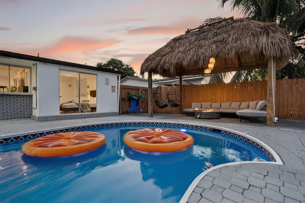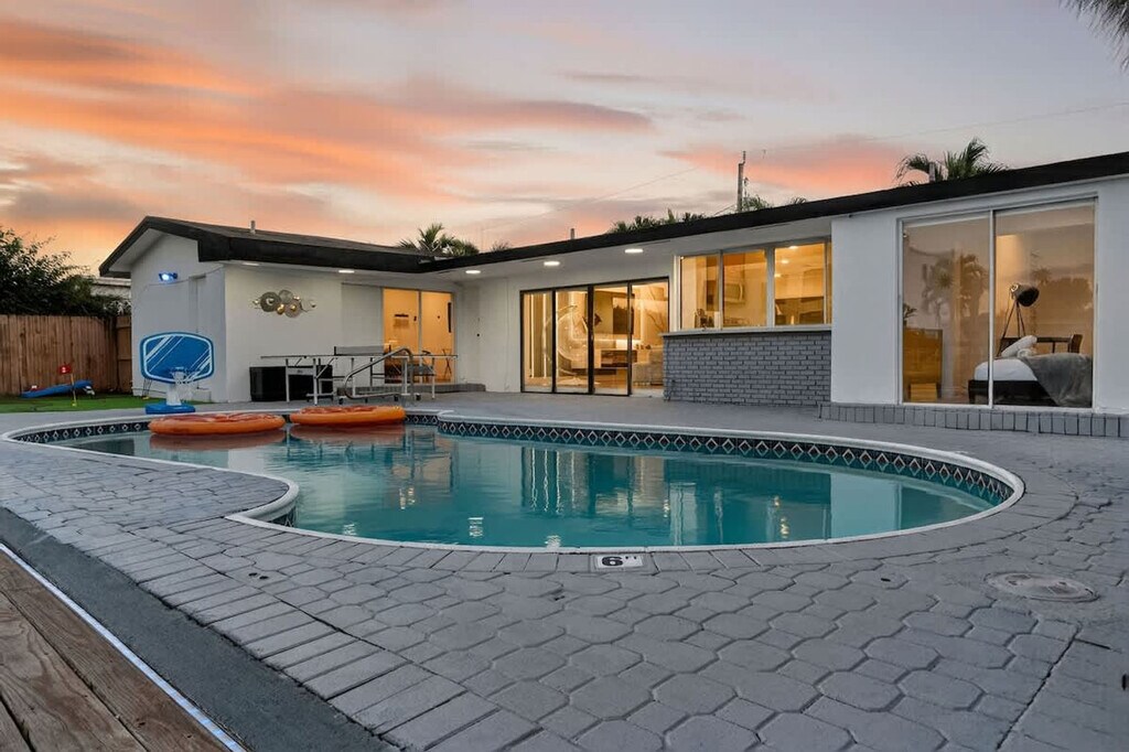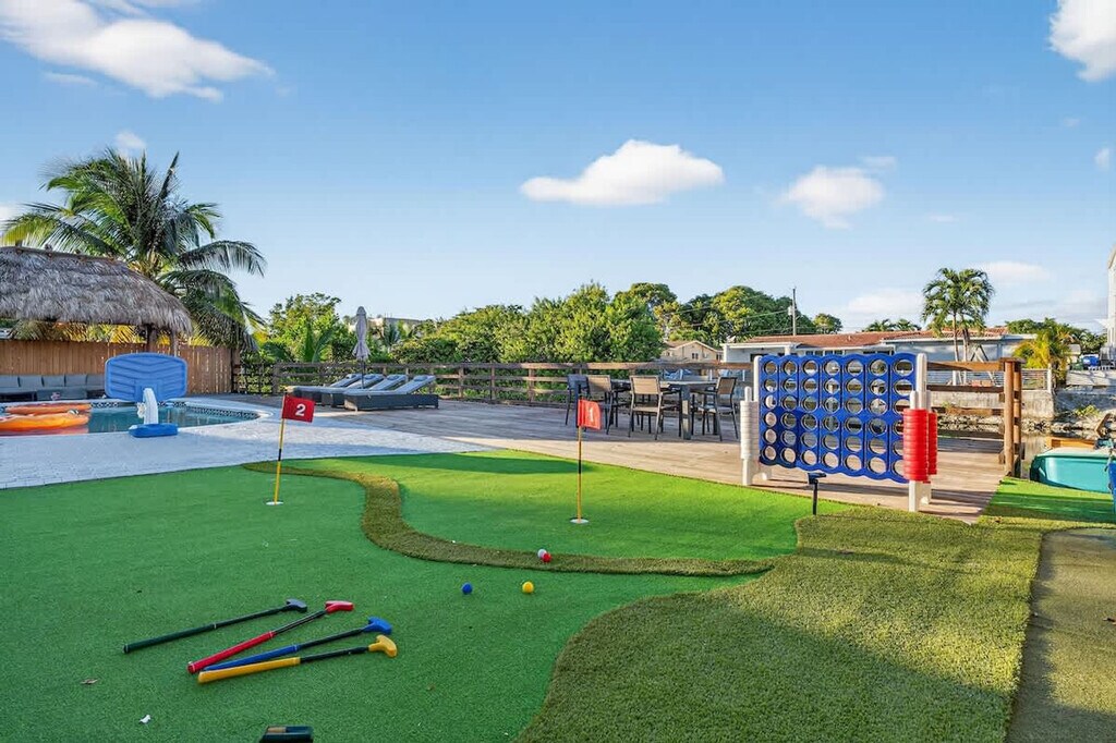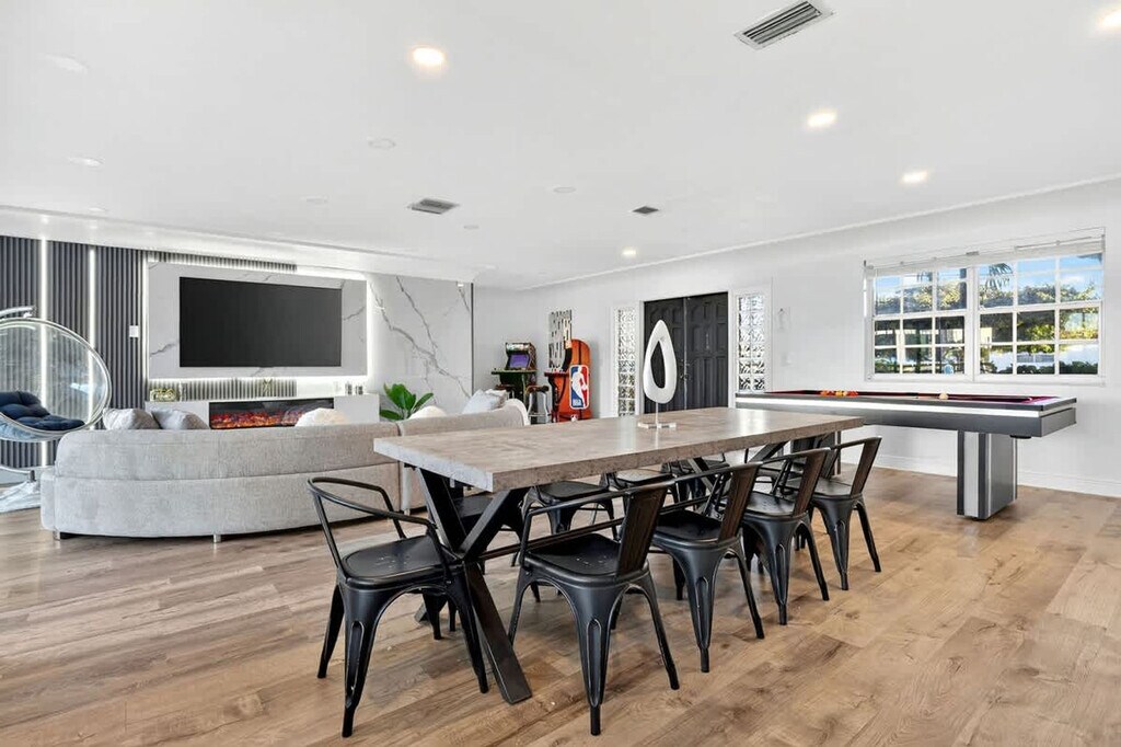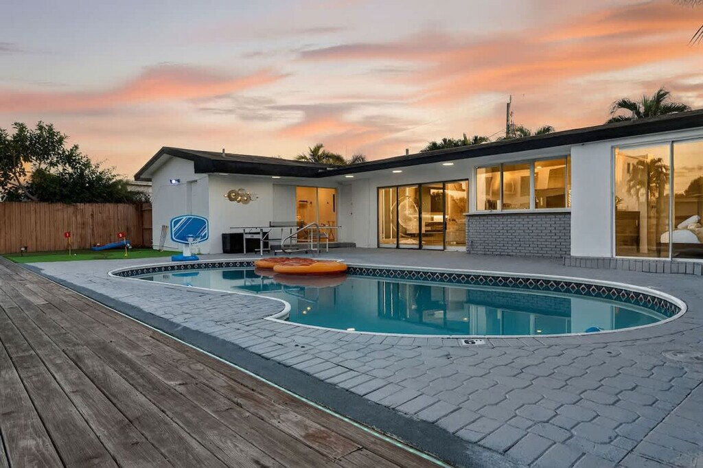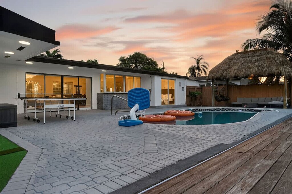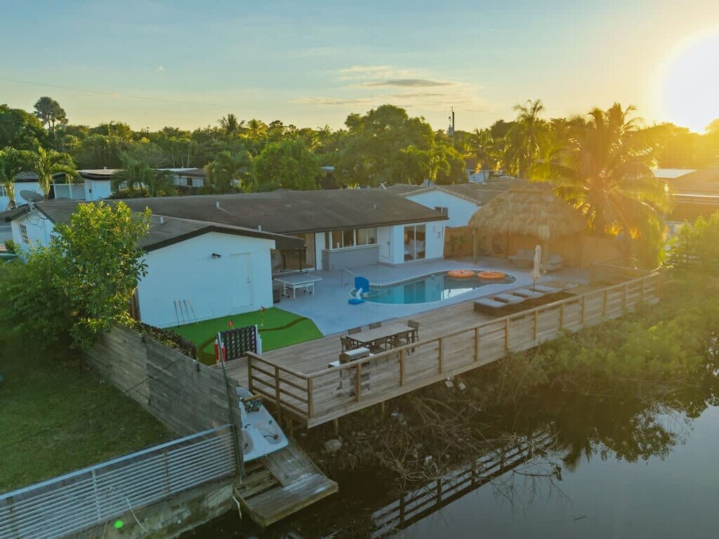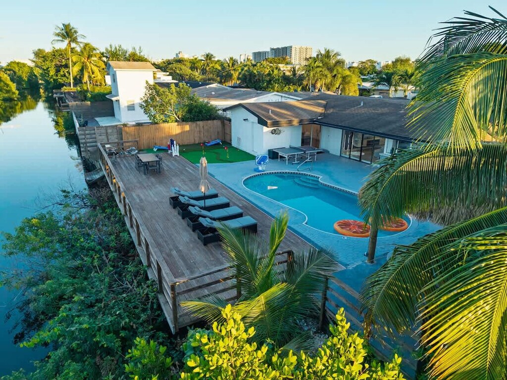 Feel at home in this paradise property located in the heart of Miami! This 5-bedroom house offers 2250ft² / 209m² of living space with a waterfront view and sunset overlook, providing lake access to the ocean. This getaway has everything you need for the perfect Florida experience, including arcade games, a pool table, ping pong, a pedal boat, a tiki, a firepit, and mini golf. Relax by the tiki, tan by the heated pool, or unwind by the water. Each of the five bedrooms is equipped with a Smart-TV. All bathrooms are fully stocked with essential toiletries, and fresh towels are provided to ensure a comfortable stay. The pool can be heated for an additional $50 per day with 48 hours' notice. This is a pet-friendly property. Free driveway parking is available for up to 3 cars. Bike rentals and electric scooters can be arranged upon request. You're staying in one of the most convenient and upscale pockets of Aventura / North Miami, close to Aventura Mall, beaches, parks, restaurants, and major highways for easy access to all of Miami & Fort Lauderdale. A local café and convenience store are within a few minutes' walk. Parks and walking paths in Aventura are just a 5-minute drive away. Aventura Mall is 5 minutes away, Sunny Isles Beach is 10–12 minutes away, Oleta River State Park is 12 minutes away, Aventura Brightline Station is 10 minutes away, Haulover Beach & Marina is 15 minutes away, Founders Park is 5 minutes away, Gulfstream Park is 12 minutes away, Bal Harbour Shops is 15 minutes away, Hard Rock Stadium is 15 minutes away, Hard Rock Casino is 22–25 minutes away, Miami Beach / South Beach is 25–30 minutes away, Fort Lauderdale Airport (FLL) is 20–25 minutes away and Miami International Airport (MIA) is 25–30 minutes away. Driveway parking is limited to 3 cars; do not park on the street or grass, as the city will issue a fine. If the BBQ grill is not cleaned after use, an extra $50 cleaning fee may apply. Smoking is not allowed inside the house. The landscaper will enter the property for scheduled lawn maintenance every 15 days, and the pool technician will conduct pool maintenance twice a week. [SI]